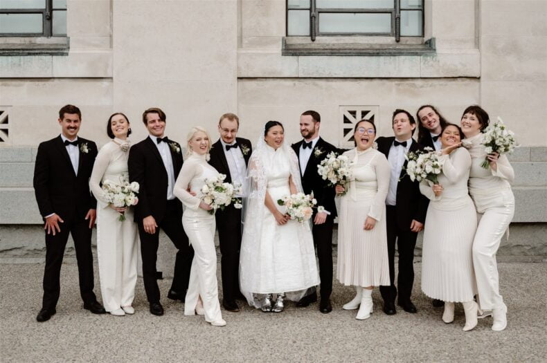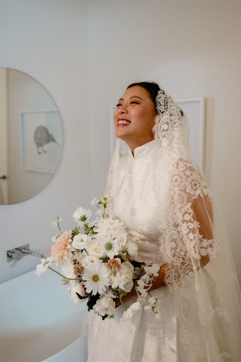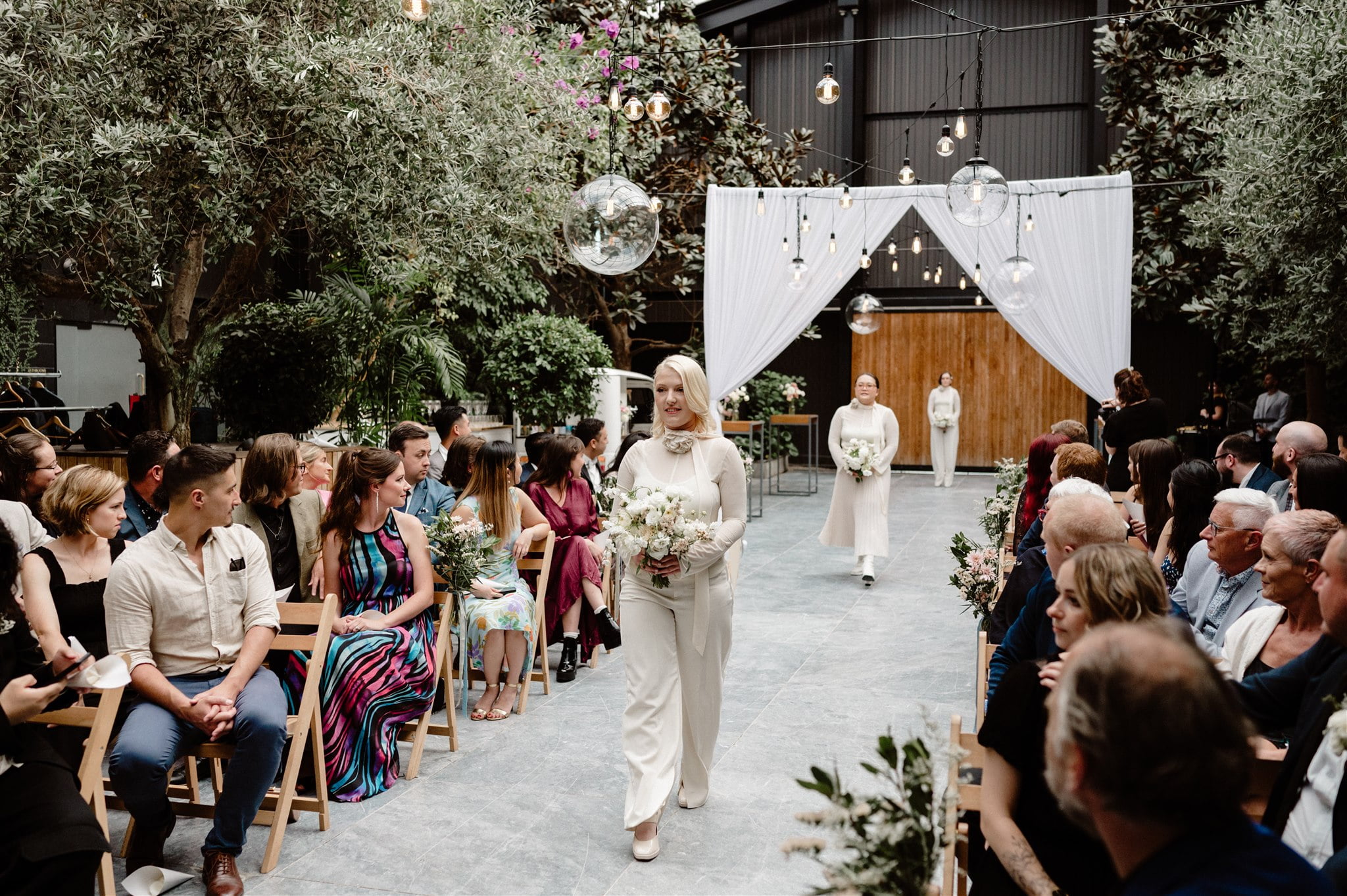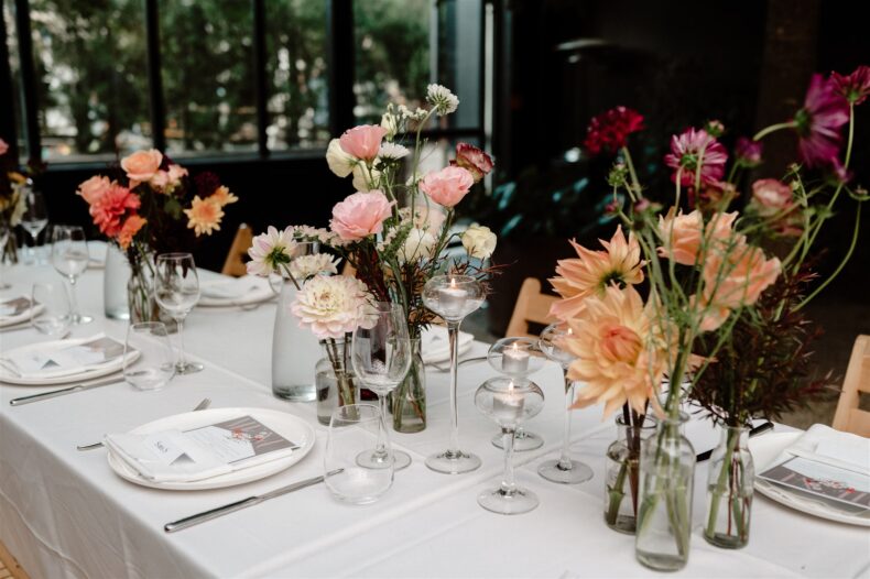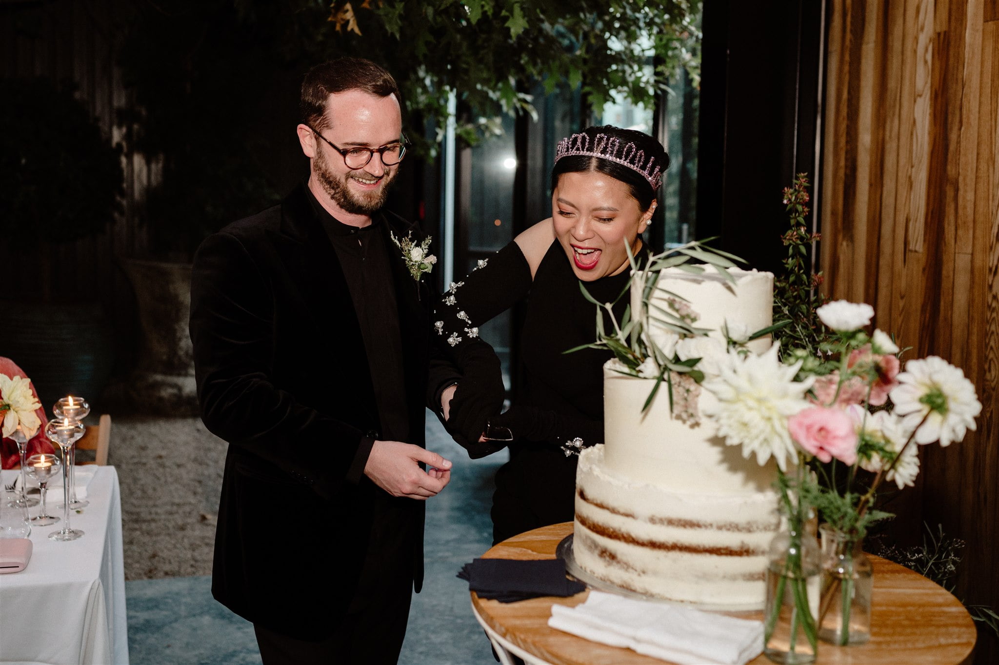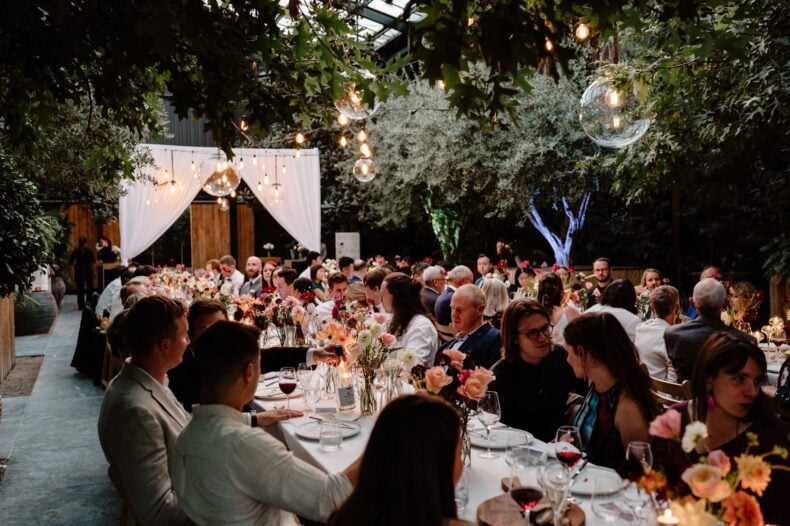 Meet Melody and Lucian, better known to their people as Mel and Goose. After 12 years together, they got married in the heart of Auckland at Glasshouse, and tell us they wanted it to “feel warm, romantic and natural. We created a cosy vibe in the evening as if our guests were coming over to our house to have dinner.” So sweet. Throw in the bride’s EPIC silver boots and killer reception outfit, and you’ve got yourself a good time. Kasia Kolmas was on-hand to catch the whole delish day on camera. Come on, let’s scroll…