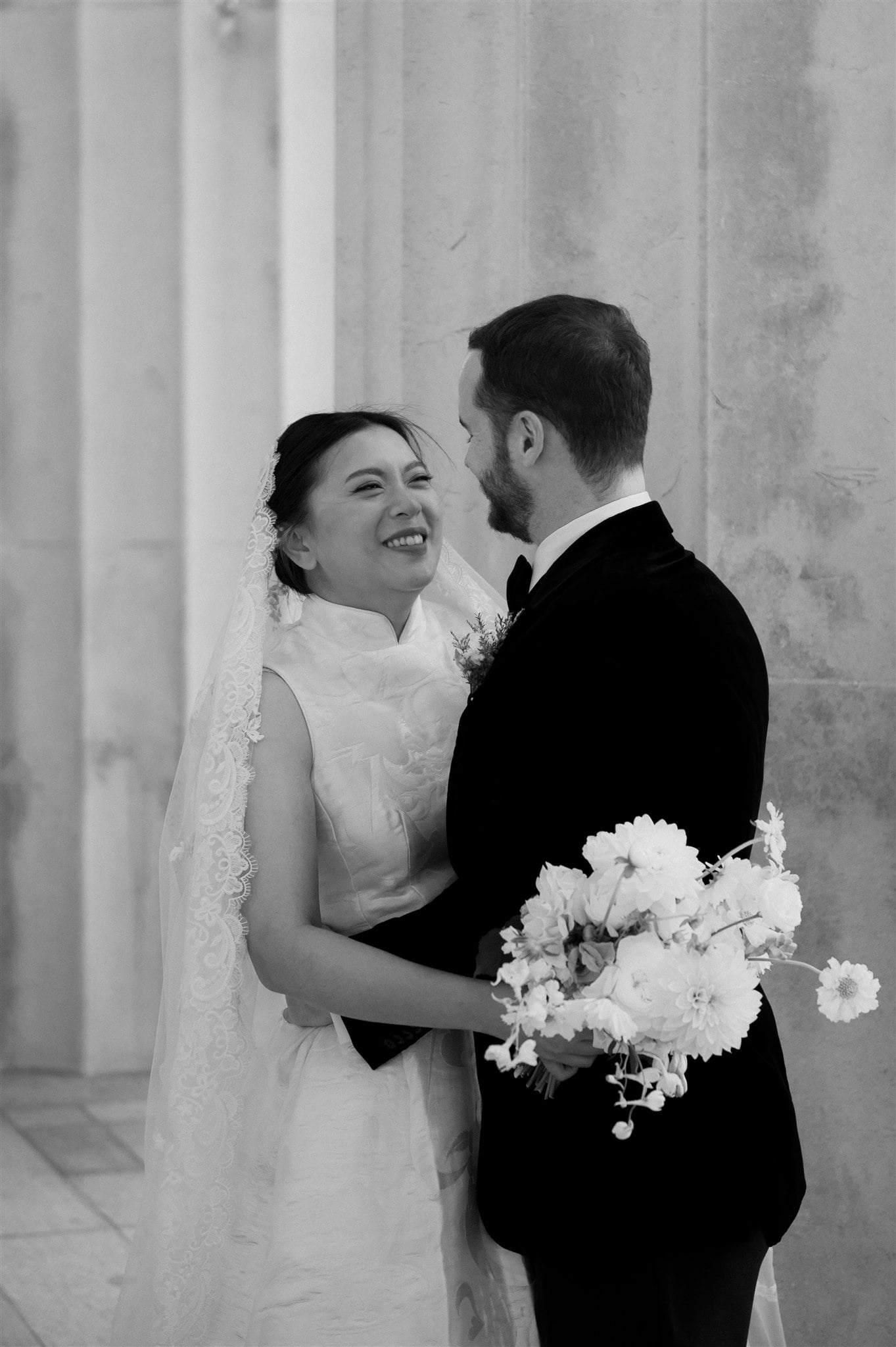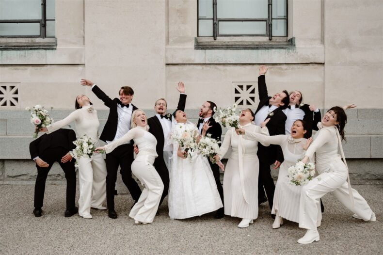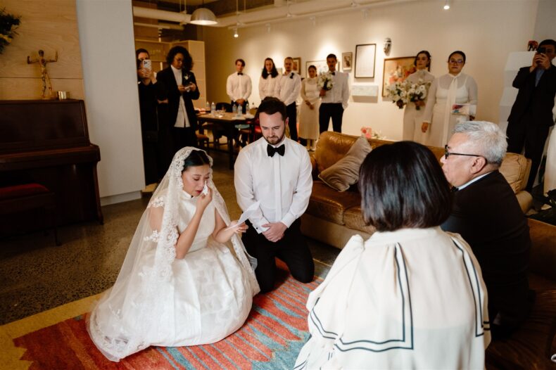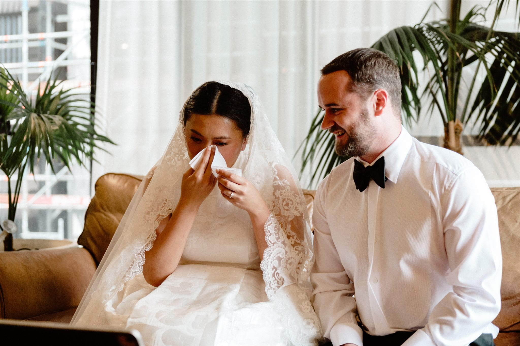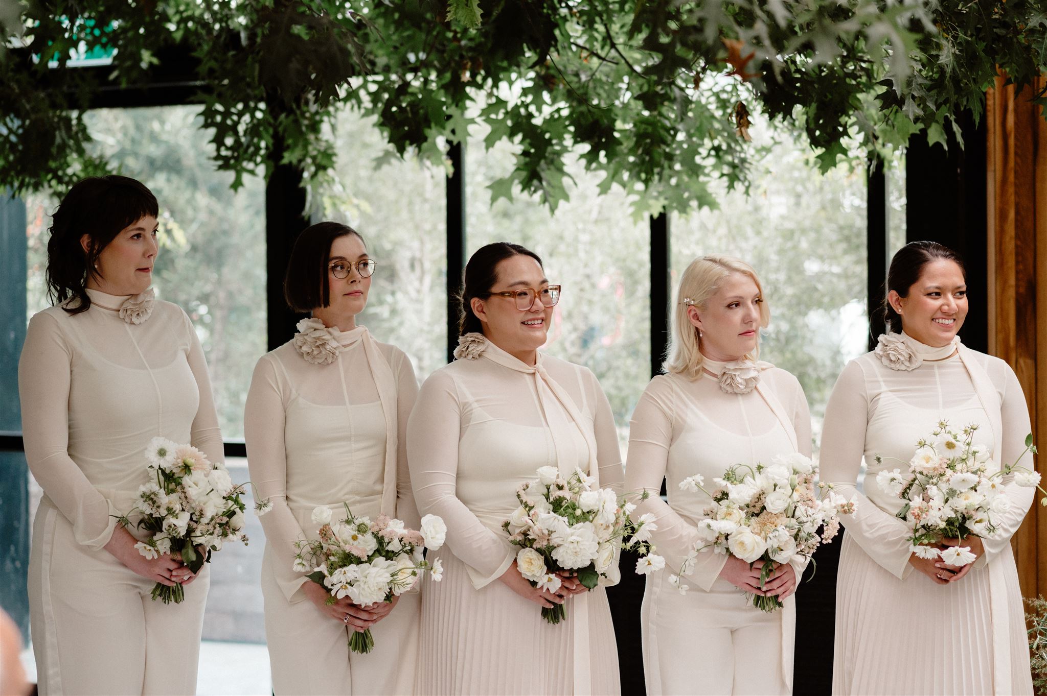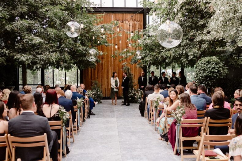 Meet Melody and Lucian, better known to their people as Mel and Goose. After 12 years together, they got married in the heart of Auckland at Glasshouse, and tell us they wanted it to “feel warm, romantic and natural. We created a cosy vibe in the evening as if our guests were coming over to our house to have dinner.” So sweet. Throw in the bride’s EPIC silver boots and killer reception outfit, and you’ve got yourself a good time. Kasia Kolmas was on-hand to catch the whole delish day on camera. Come on, let’s scroll…