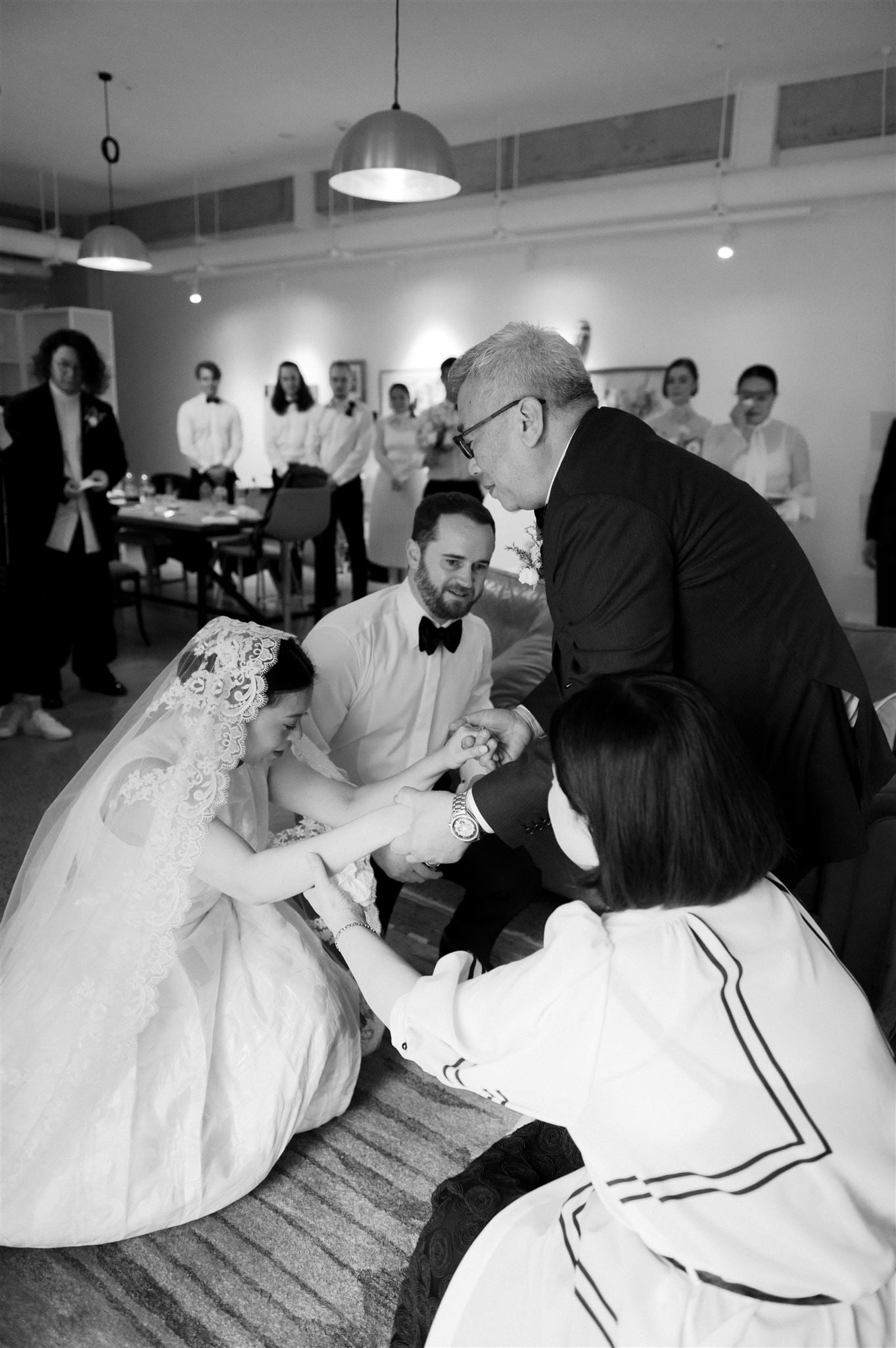 A TOUCH OF TRADITION “My dress is from a Taiwanese designer. Being from Taiwan, I wanted to present that side of my culture at the wedding. We also had a Taiwanese farewell ceremony prior to the ceremony. This is a tradition where the bride says farewell to her parents. It is a moment for the bride to thank her parents for all their hard work raising her.”