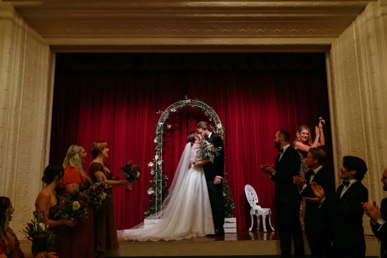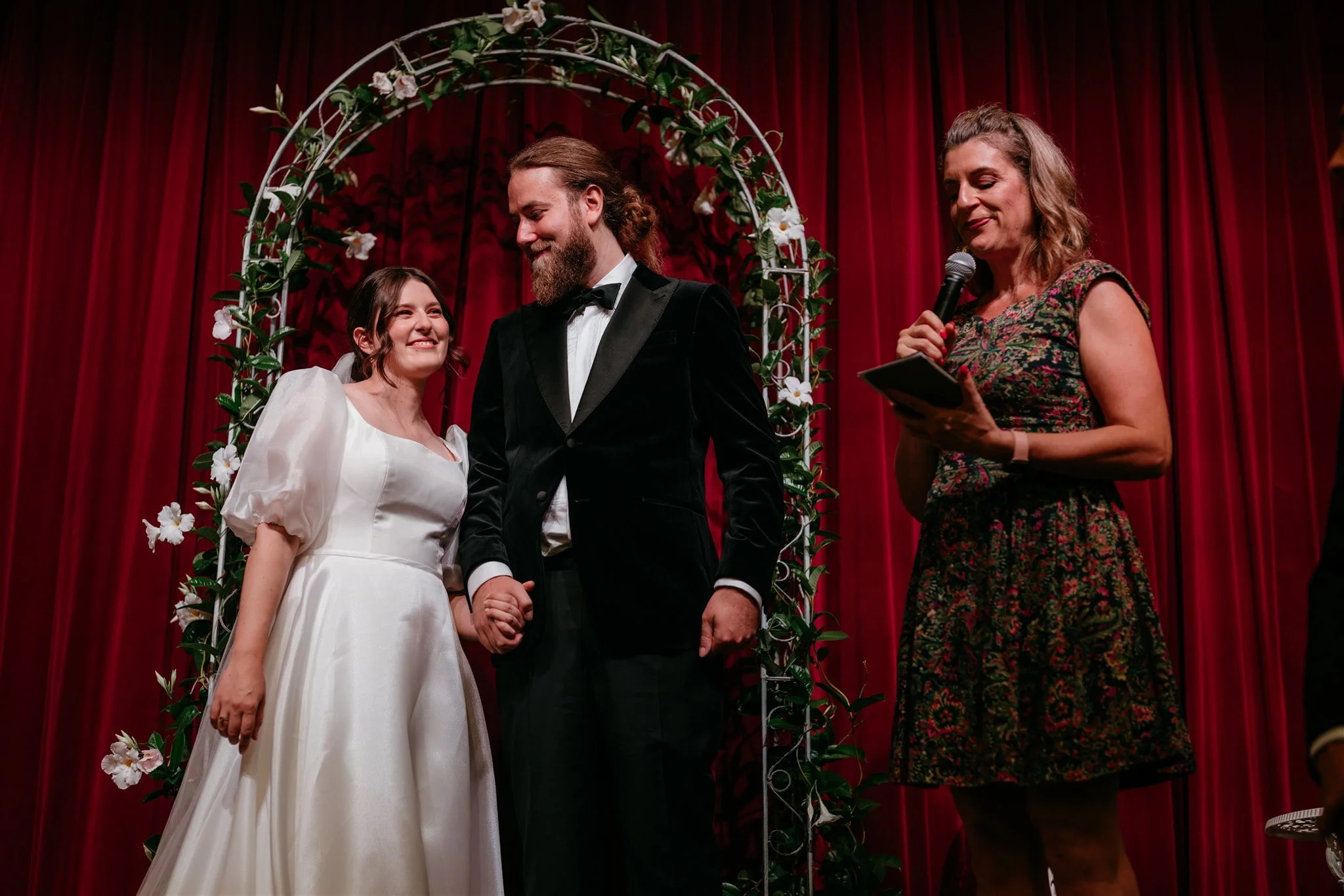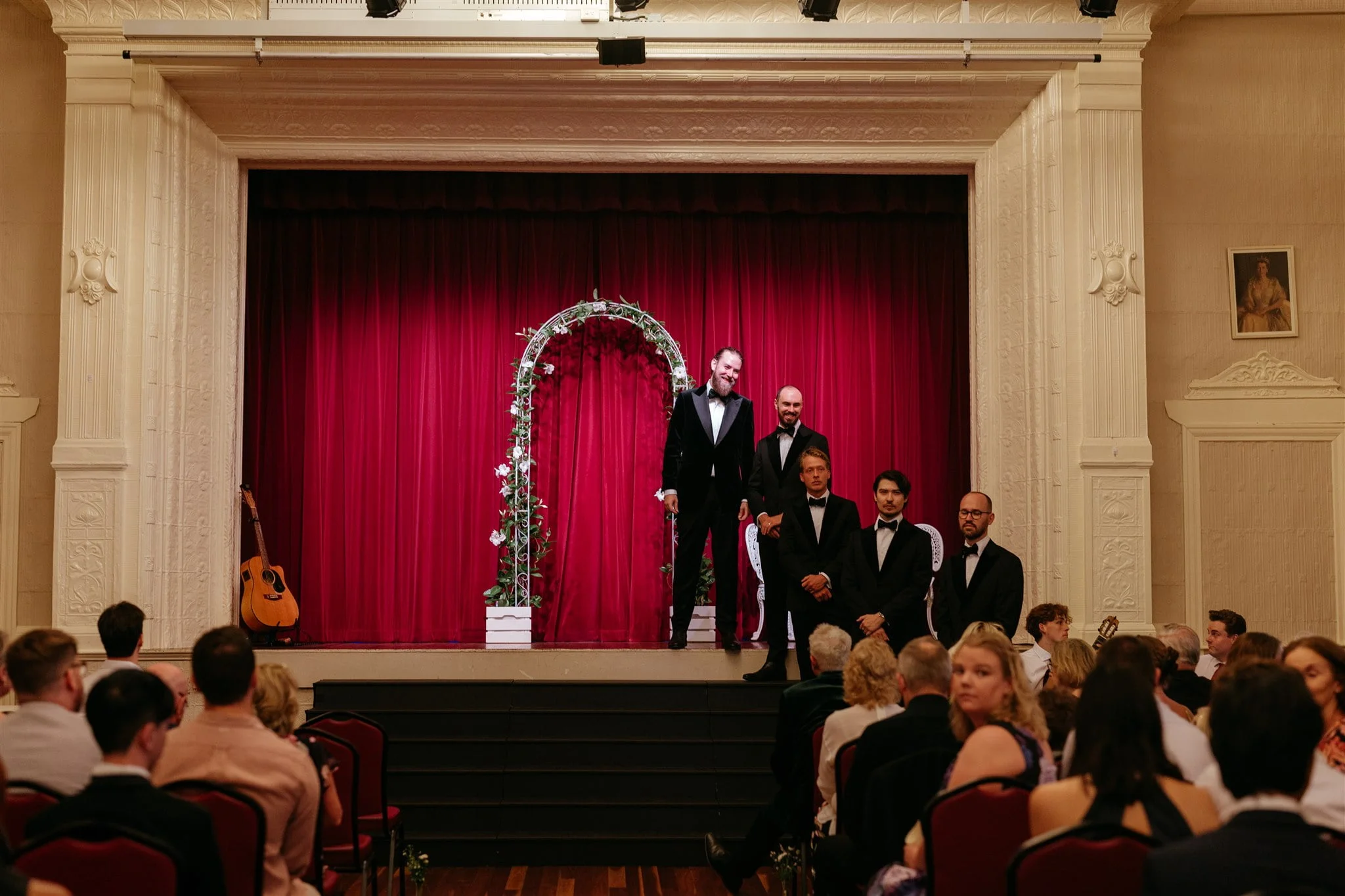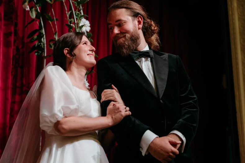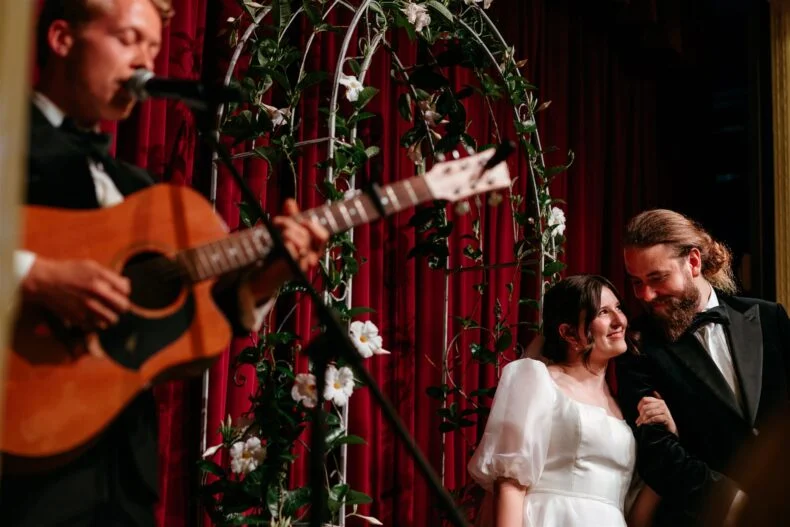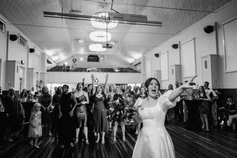 Married on their five-year anniversary at Sandgate Town Hall in Brisbane, Melita and Steele, frontman of Aussie band The Steele Syndicate, themed their wedding around joy! We LOVE that! “We are both music lovers and performers, so as the wedding planning continued phrases such as ‘night at the jazz club’ began to emerge,” the couple share. “At the end of the day, we were just aiming to plan an event which was both uniquely us and a great celebration – dancing to live music, eating good food and celebrating life and the start of a new chapter.”