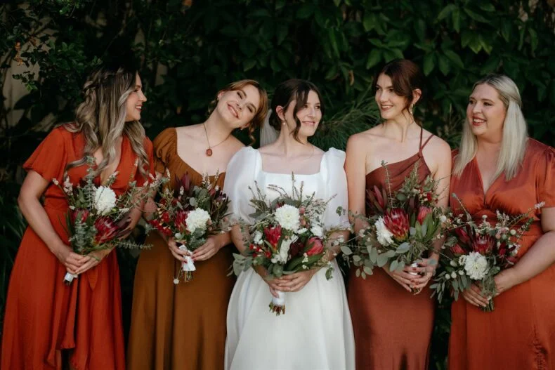 CONTRIBUTING VENDORS Photographer Sam Wyper Photography Event Planner I Do Crew Flowers Bride and bridesmaids, purchased from the Brisbane Flower Markets Ceremony & reception venue Sandgate Town Hall Catering Bombay Dhaba Food Truck Something Sweet Gelato Hire Items Aladdin’s Party Hire Sound Hire JLX Productions Entertainment Solstice Guitar Duo, Pocket Love Celebrant Roxy Celebrant Rings PW Fine Jewellery Ringleaders THE BRIDE Bridal boutique LUV Bridal Shoes Sandler Accessories Angus and Coote Hair Ellie Ross HMUA Makeup Vanessa Kay Makeup Bridesmaid dresses Baltic Born, Billy J, Fortunate One Bridesmaid shoes Spendless Shoes, Novo, Jo Mercer THE GROOM Suit, shirt & groomsmen suits Enclothed Tie Myer Cufflinks Calibre Shoes RM Williams