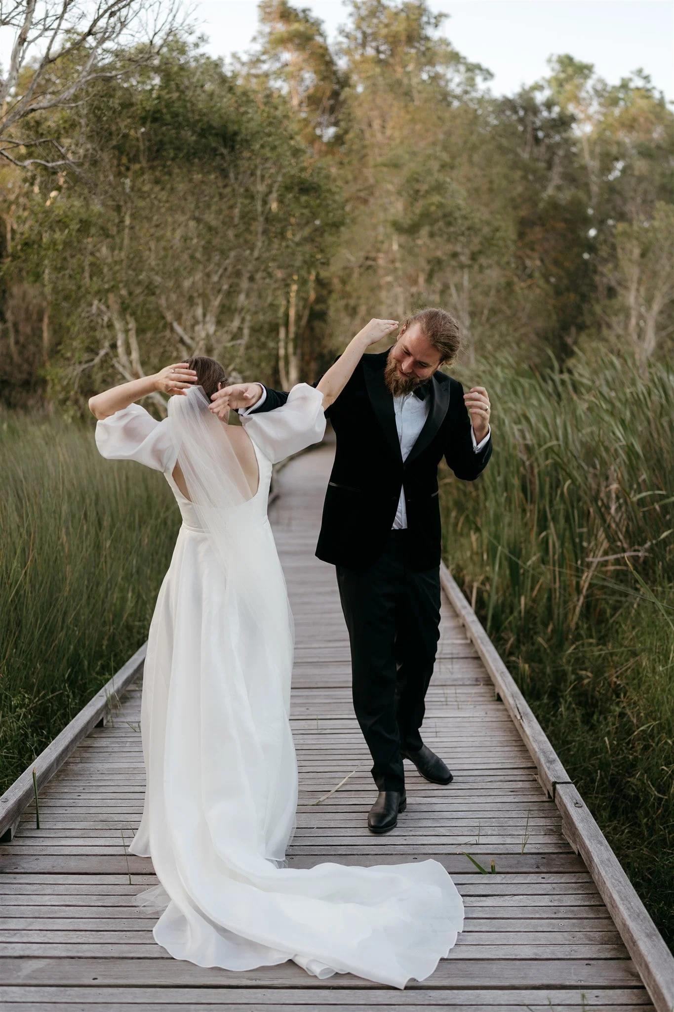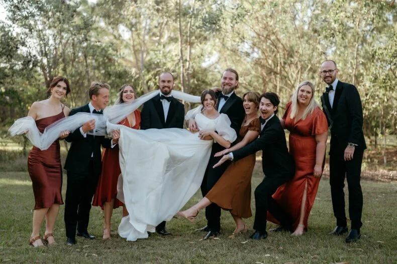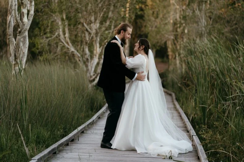 With the help of Roxy Celebrant to officiate and Sam Wyper Photography to capture the mems, the loved-up newlyweds threw an impressive party, so much so it even got gatecrashed by a few passers-by. Scroll down for the full story and some stunning pics…