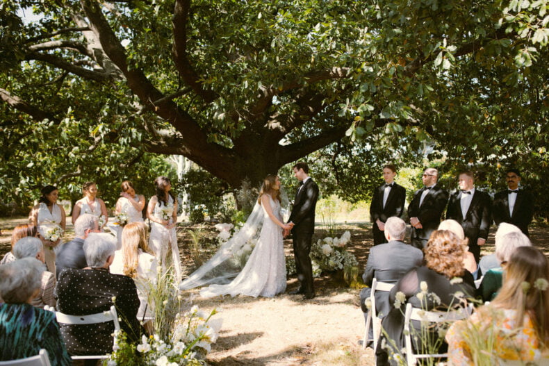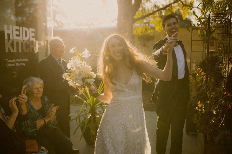 THE VIBE “Whimsical quickly became the word of our wedding planning. We wanted the day to feel relaxed, happy and not too structured. We went with a lot of natural colours, flowy floral arrangements to tie in with the gardens of Heide, and fun music that reminded us of our relationship when we first started dating.”