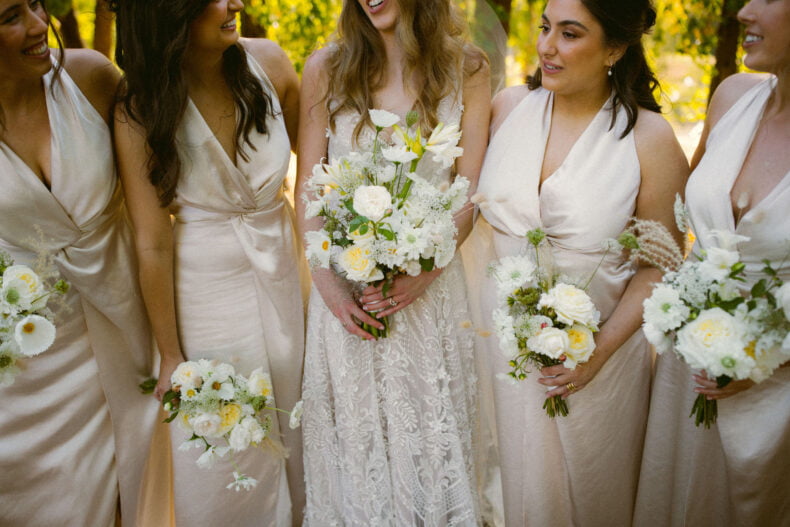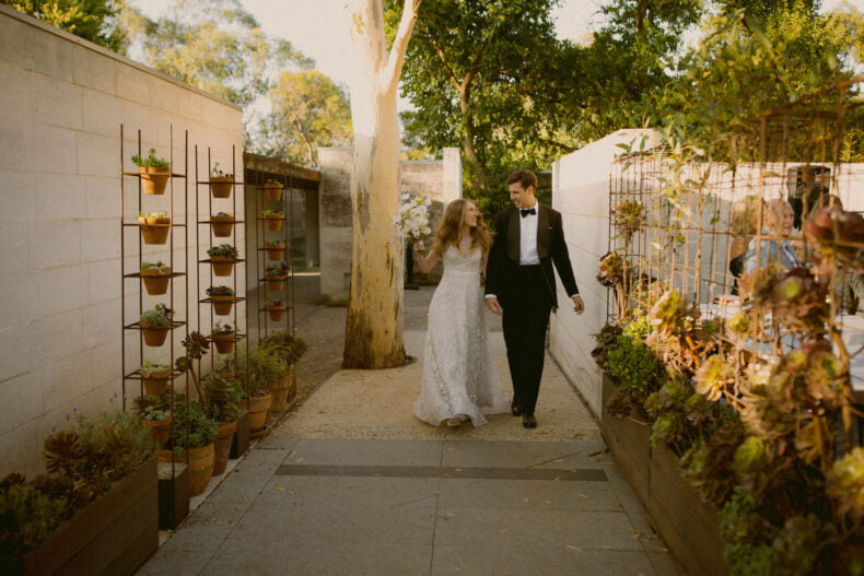Contributing Vendors: Photographer Lilli Waters I Got You Babe Cinematographer OneHouse Productions Florist Simona Turco Stelo Studio Ceremony + Reception Venue Heide Museum of Modern Art Event Planner Heide Kitchen, The Mulberry Group Entertainment Woody Samson Celebrant Shelley Amar You’ve Got The Love Rings Cushla Whiting THE BRIDE Bridal Gown Designer Anna Campbell Dress Alterations Brides of Brighton Veil Anna Campbell Bridal loungewear set Piyama Bridesmaid loungewear set Cotton On Body Shoes Loeffler Randall Earrings Mejuri Hair Amanda Lunedei Makeup Karla Roccuzzo Bridesmaid dresses Chancery the Label Bridesmaid shoes Bared Footwear Bridesmaid gifts Amaura Gifting via Etsy THE GROOM Suit, Shirt & Tie P Johnson Shoes John Lobb Groomsmen suits Ferrari Formalwear