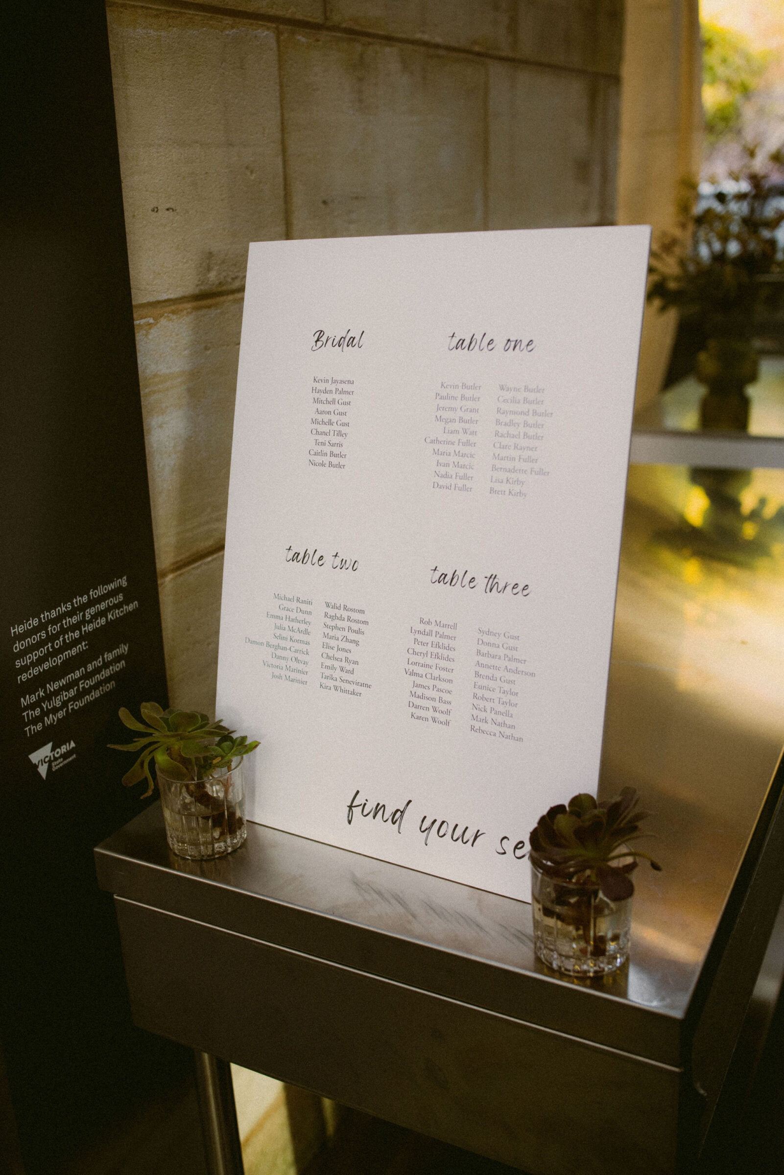 THE VENUE “The grounds at Heide Museum of Modern Art are absolutely beautiful and the staff at Heide Kitchen did a great job of setting up the space, considering all details down to the table arrangements, the place cards and candles. The day ran really smoothly, with the transitions of each stage of the day feeling easy for us and our guests.”