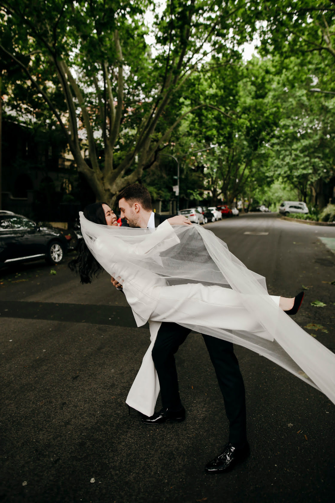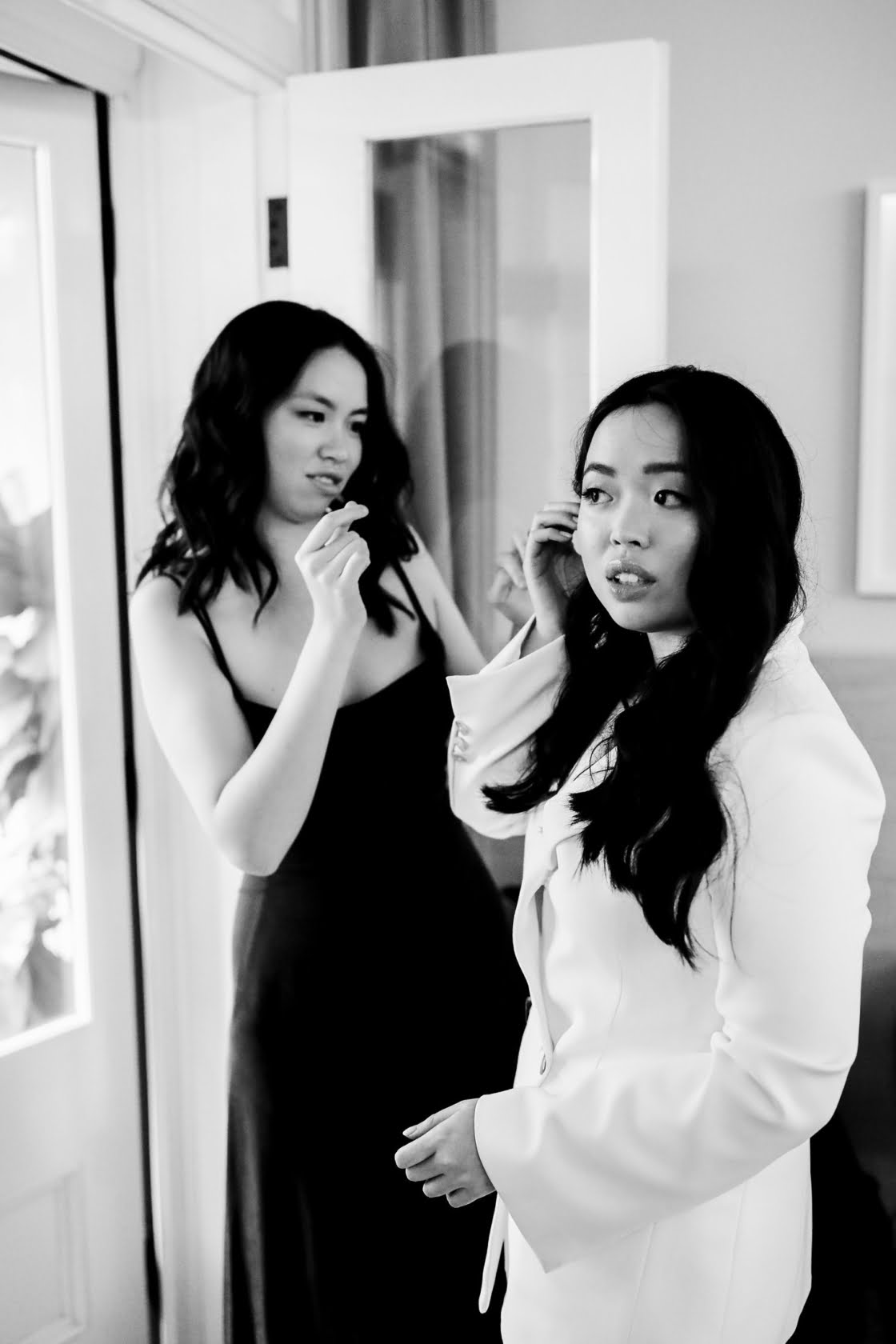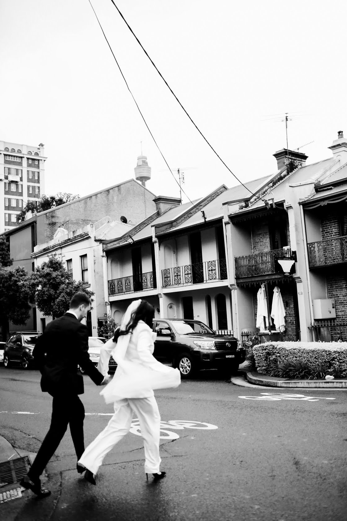 THE DRESS “Inspired by Bianca Jaggar’s Yves Saint Laurent bridal suit, four days before the wedding, Nic found Karen Willis Holmes’ Elopement Collection had a white suit and called up the head office asking for a miracle. Jazz from KWH found one suit left in the correct size, and Susan altered it last minute. KWH ladies are absolute lifesavers- they made Nic feel comfortable in her body – we cannot thank them enough. Nic fully encourages any bride with anti-bridal tendencies to consider a chic suit and get down to Karen Willis Holmes. Jamie bought his suit – a classic black tuxedo – from M.J. Bale after visiting a few other vendors with his groomsmen.”