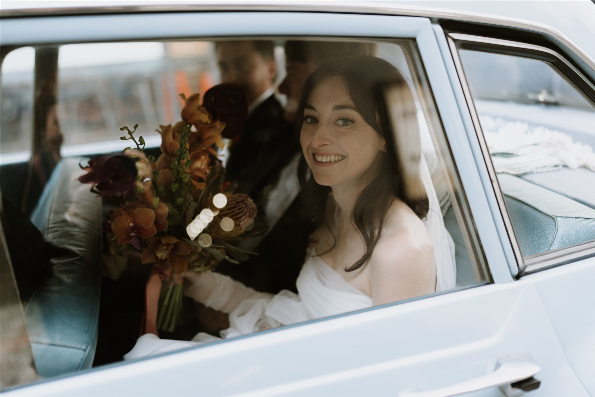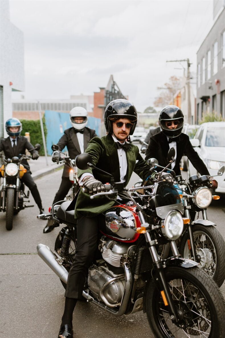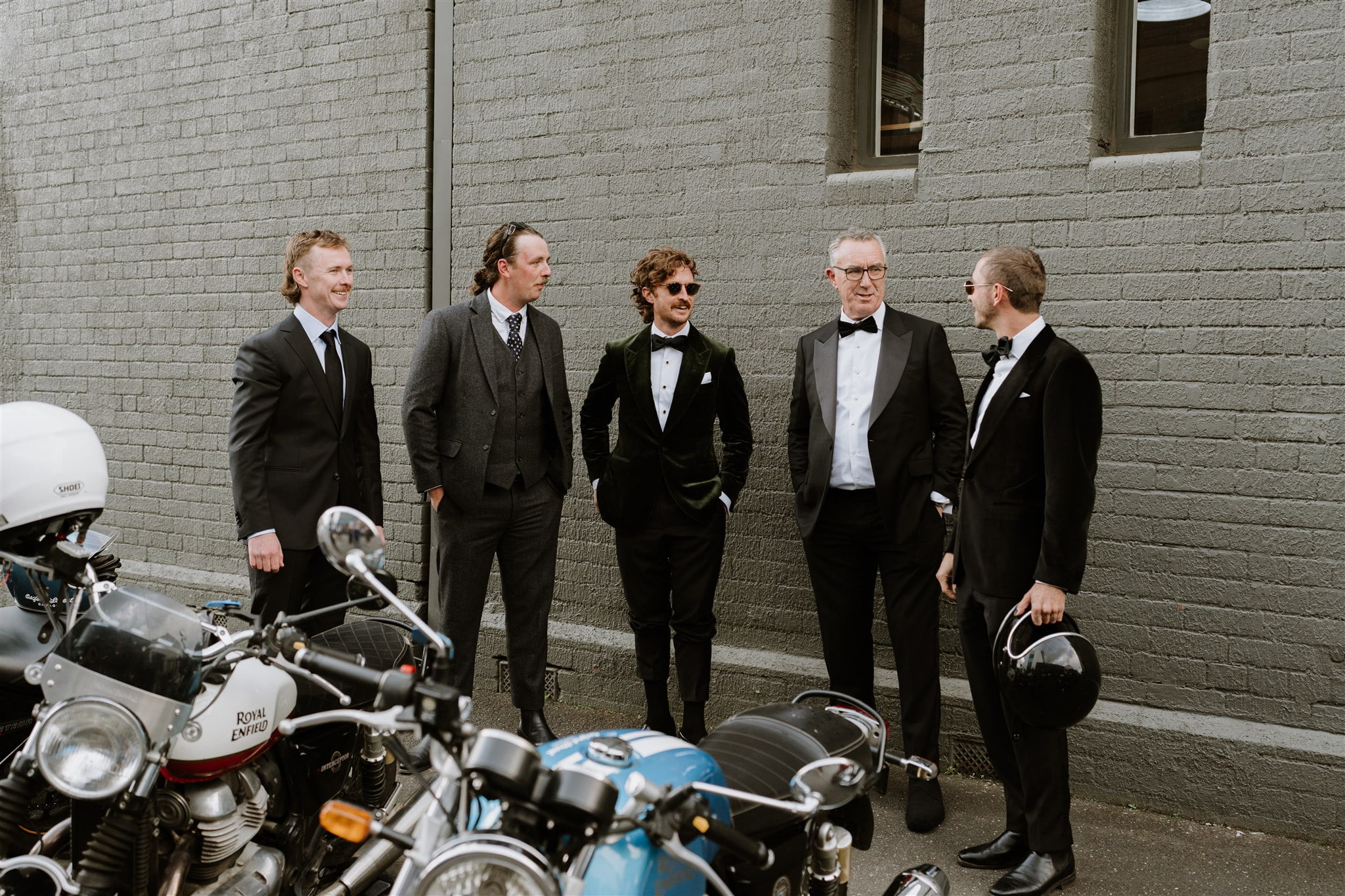 WE’RE REALLY GLAD WE… “Chose to arrive in ways that were meaningful to us. Odi sourced cafe racer motorcycles for his best man, father, siblings and himself to make a grand entrance. I arrived with my brother, Dad and other best man in my ‘something blue’ for the day – my dad’s vintage 1962 Valiant called ‘Val’. Both connected us to our best men and family.”