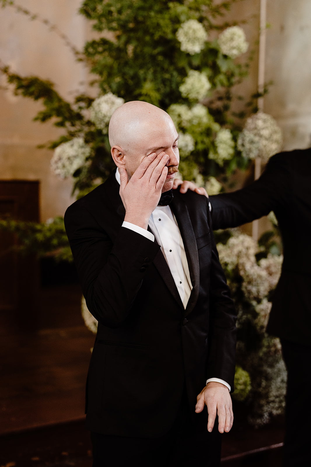 FAVE DEETS “The flowers are still one of my most favorite elements from the day. We gave Prunella the brief of a washing machine overflowing with soap suds. We wanted it to look like the flowers and maple grew in the space over time and added to how beautiful the space is rather than distracting from it. I even went as far as to create a digital render of the venue, with the flowers and Caris and her team recreated it exactly as we had imagined – a dream come true!”