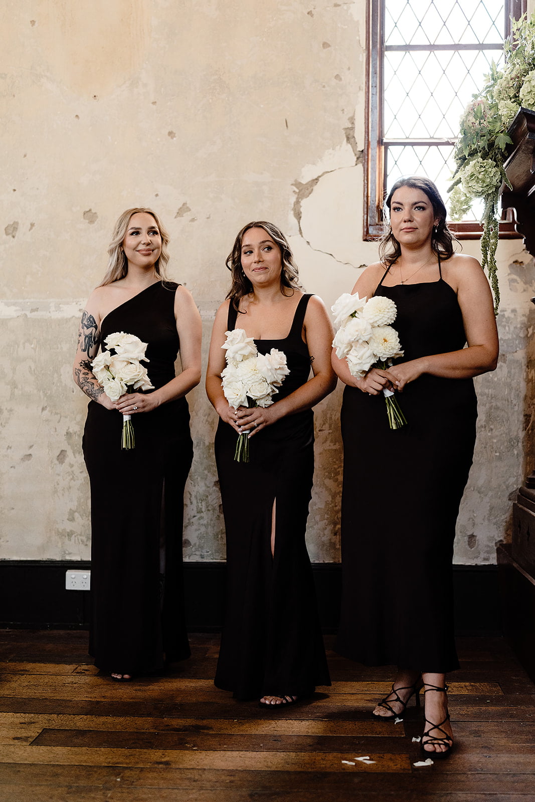 CONTRIBUTING VENDORS Photographer Ashleigh Haase Florist Prunella Ceremony & reception venue Churchill Catering & cake Spoonful Stationery & signage State of Elliot Entertainment One More Song DJs Celebrant Love Leah Guest Transport Organs Coaches Candles Hall Of Flames THE BRIDE Bridal gown designer Harriette Gordon Bridal Boutique Bluebell Bridal Veil Harriette Gordon Bridesmaids getting ready tees Kyha Studios Shoes Magda Butrym Hair & Makeup Megan Harrison Fragrance Thé Noir 29 by Le Labo Bridesmaid dresses Bec + Bridge Bridesmaid shoes Tony Bianco THE GROOM Suit, Jacket, Shirt, Pants & Bow tie InStitchu Shoes Aquila Groomsmen suits InStitchu