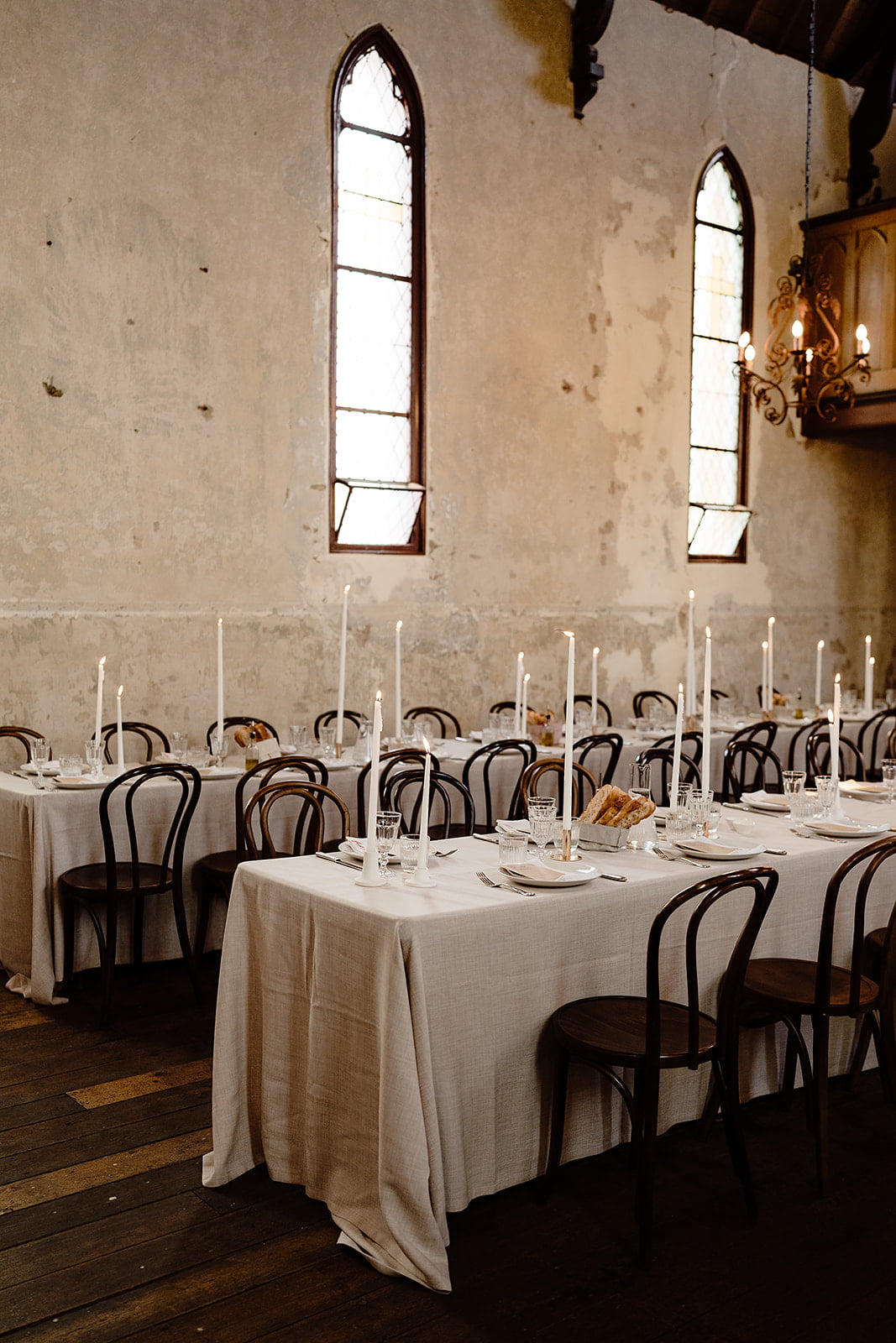 THE INSPO “As an interior designer my day to day revolves around being hyper-focused on all of the big and small details in a space. For our wedding we wanted the complete opposite – a space that we could walk into where the bare bones were so perfect we could turn up on the day with no flowers or styling and it would be breathtaking in its rawest form… that is Churchill. We chose four images we loved and anchored every other selection back to these original images. This really helped us stay on course and not lose focus. Our overall theme centered around a lot of neutrals, texture and a playful but refined use of electric red.”