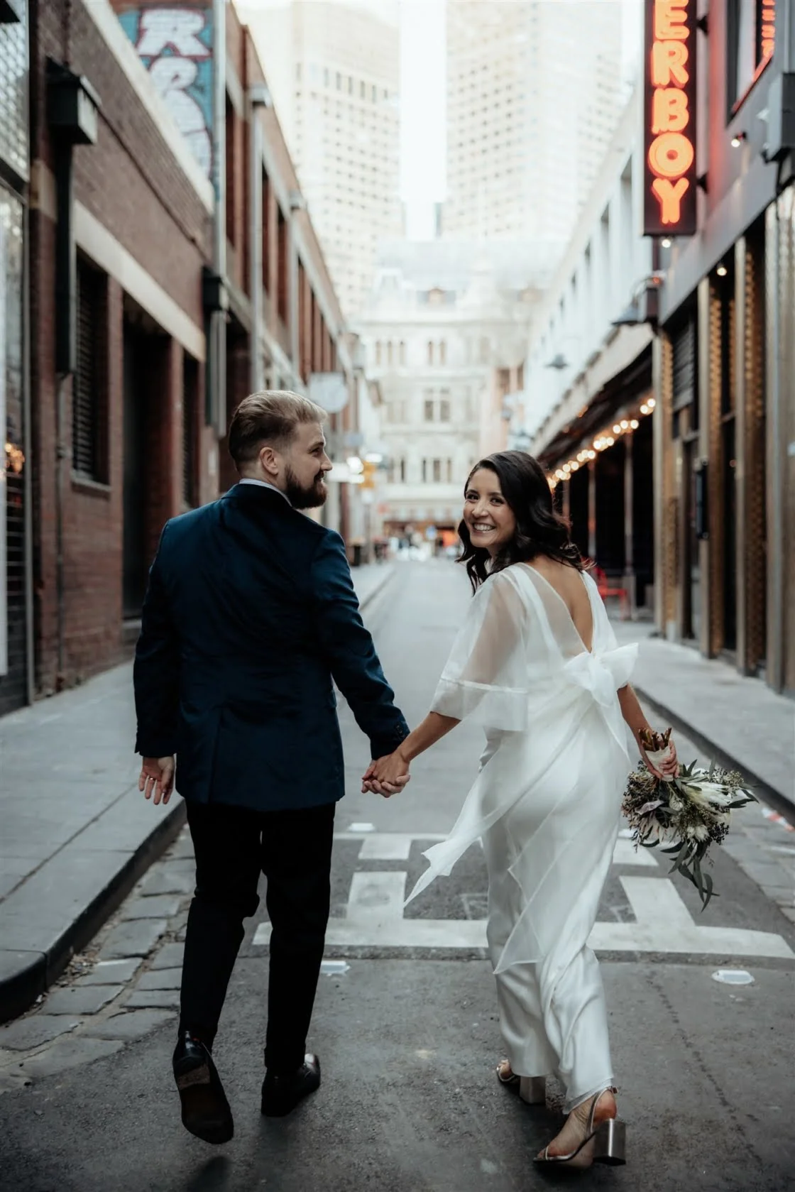 CONTRIBUTING VENDORS Photographer Maegan Brown Moments Florist Lilac and The Cat Stationery & Signage DIY (Design) Printer Stitch Press & Officeworks Ceremony & Reception Longsong Entertainment Hey Jack Celebrant Lisa Brown Rings The Line of Sun Accomodation Airbnb Photo Location Roccos Bologna Discoteca THE BRIDE Bridal Gown Lilia Cass Robes Bed Threads Shoes Essen Accessories By NYE (Earrings) Hair & Makeup Trish Sousa Fragrance Clinique Bridesmaid Dresses Bec + Bridge Bridesmaid Shoes Billini THE GROOM Suit, Jacket, Shirt, Bow Tie & Pants Paul Smith