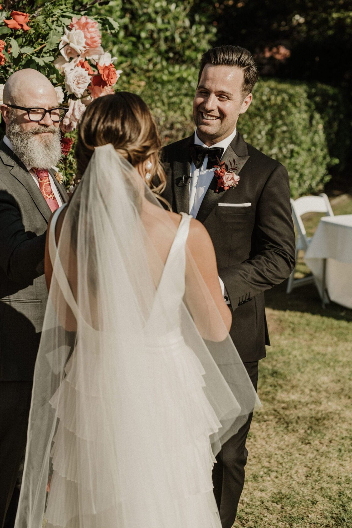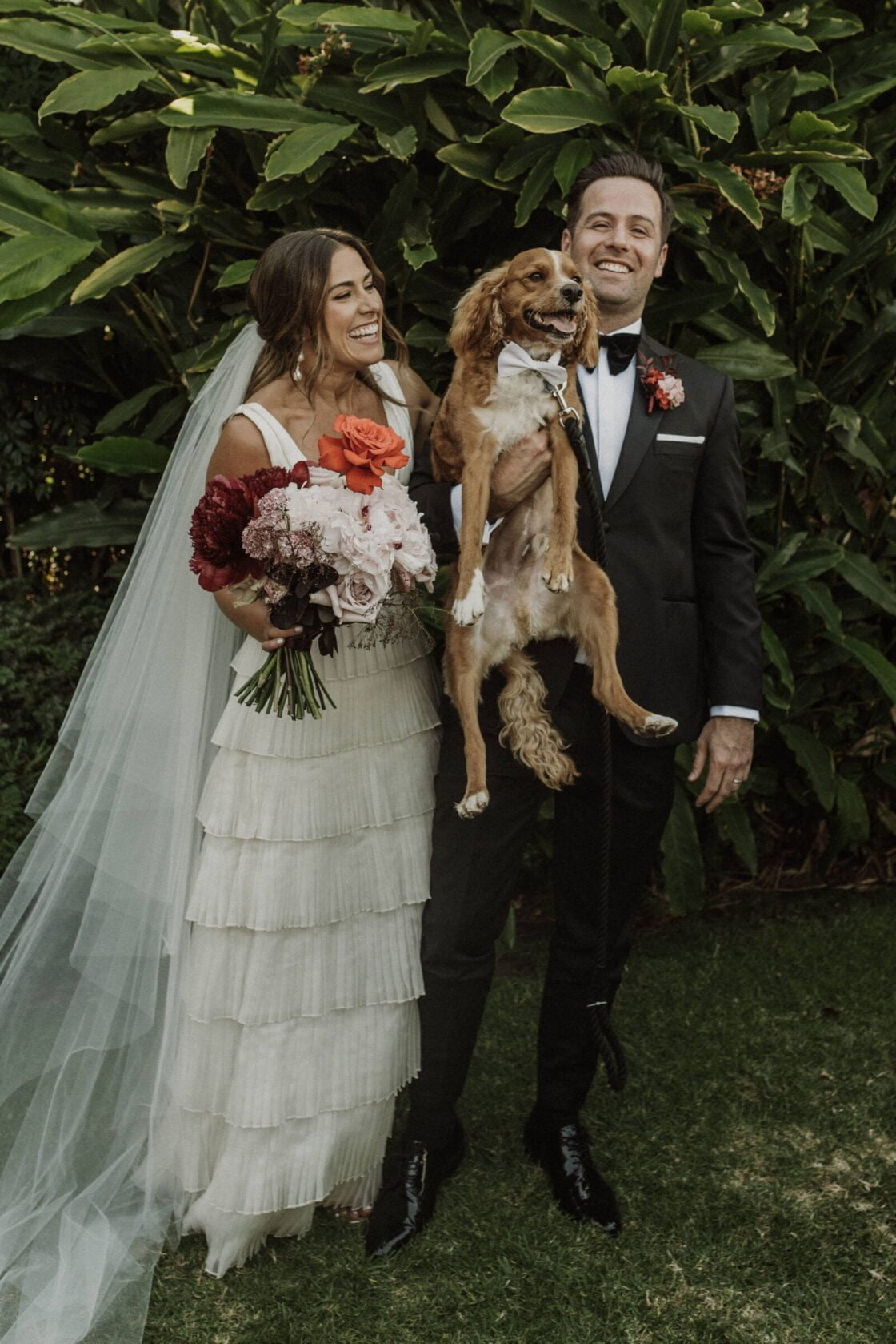 FAVE DETAILS “My flowers [by The Wilds]. I remember when my mum saw my bouquet in the morning, she was so shocked I went for something so bright – pinks and reds – I think I even shocked myself. But I knew they would look so striking not only in the venue but the pillars of roses as the backdrop at the park were so amazing – I couldn’t have been happier.”