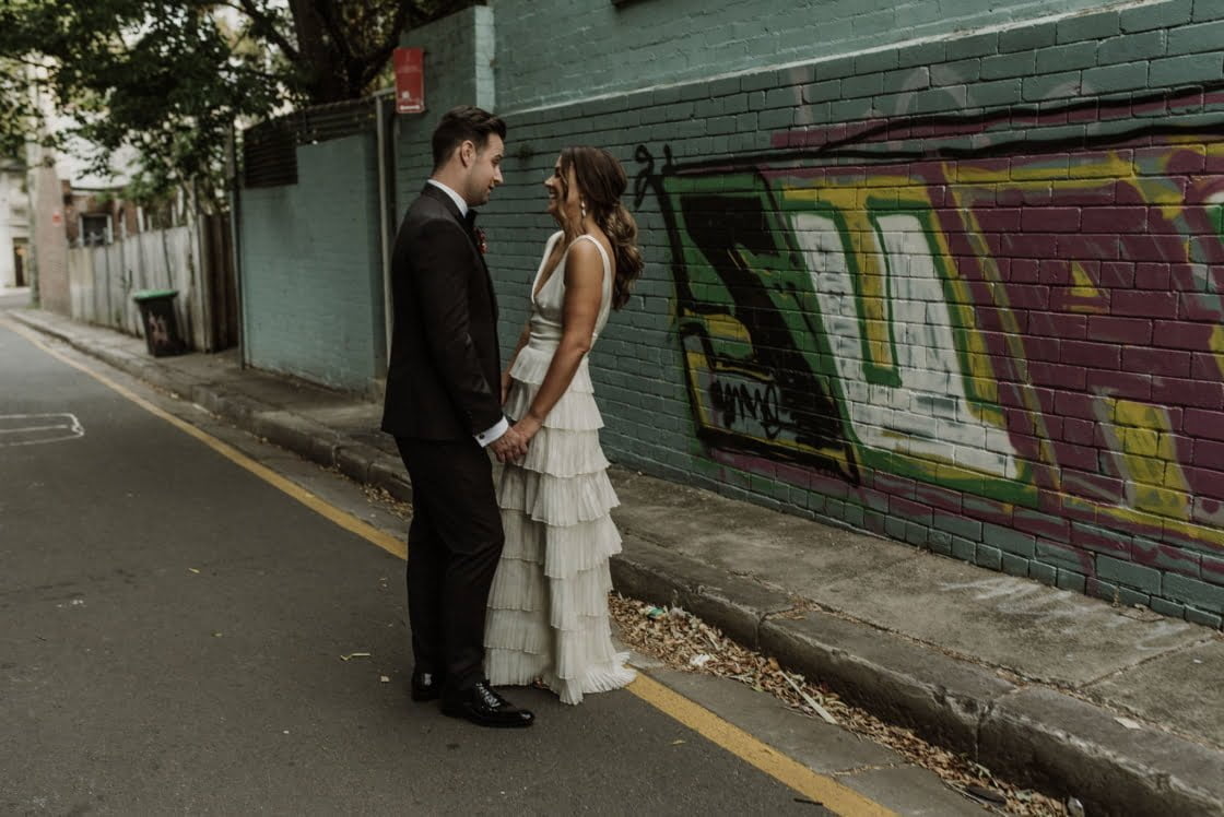 CONTRIBUTING VENDORS Photographer The Salty Shutter Cinematographer Honeybear Films Florist The Wilds Stationery Iliya Invitations Ceremony Arthur McElhone Reserve, Elizabeth Bay Reception Porteño Cake Family Hire Items Ashdown & Bee (Candle Sticks) Lighting & Sound HireTavsa Signage BB Collective Entertainment DJ Shamus Celebrant Ben Ager Rings Jacque Fine Jewellery Transport Black Cab Central THE BRIDE Bridal Gown & Veil L’eto Bridal Shoes Gucci Earrings Enesea Hair Natalie Newtown Hair Makeup Georgia Hull Makeup THE GROOM Suit Joe Black Bow Tie Zink & Sons Shoes Aquila Grooming Mr Hipster Barbershop