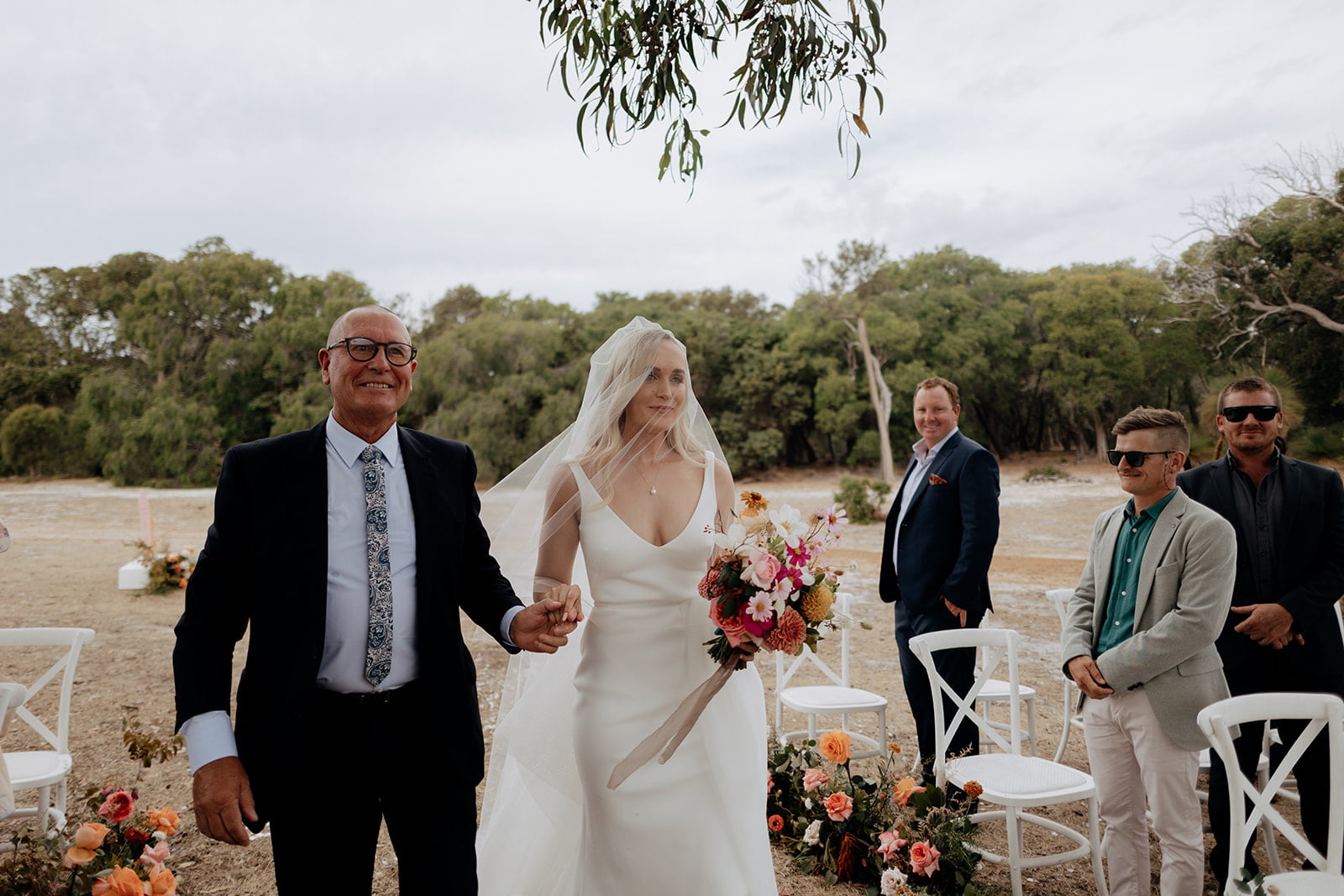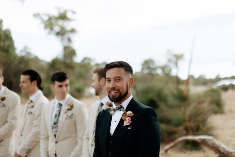If you’re a West Oz or NT bride currently on the hunt for an epic photographer, be sure to check out more of Emma MacAulay’s gorgeous pics on our directory here; if you’re as obsessed with Sarah’s Karen Willis Holmes gown, head here; if you noticed James and his groomsmens’ stylish ties (how could you not?) courtesy of Peggy and Finn, you can hit them up here, or if it’s his suit you’re loving, get in touch with Theodore here.