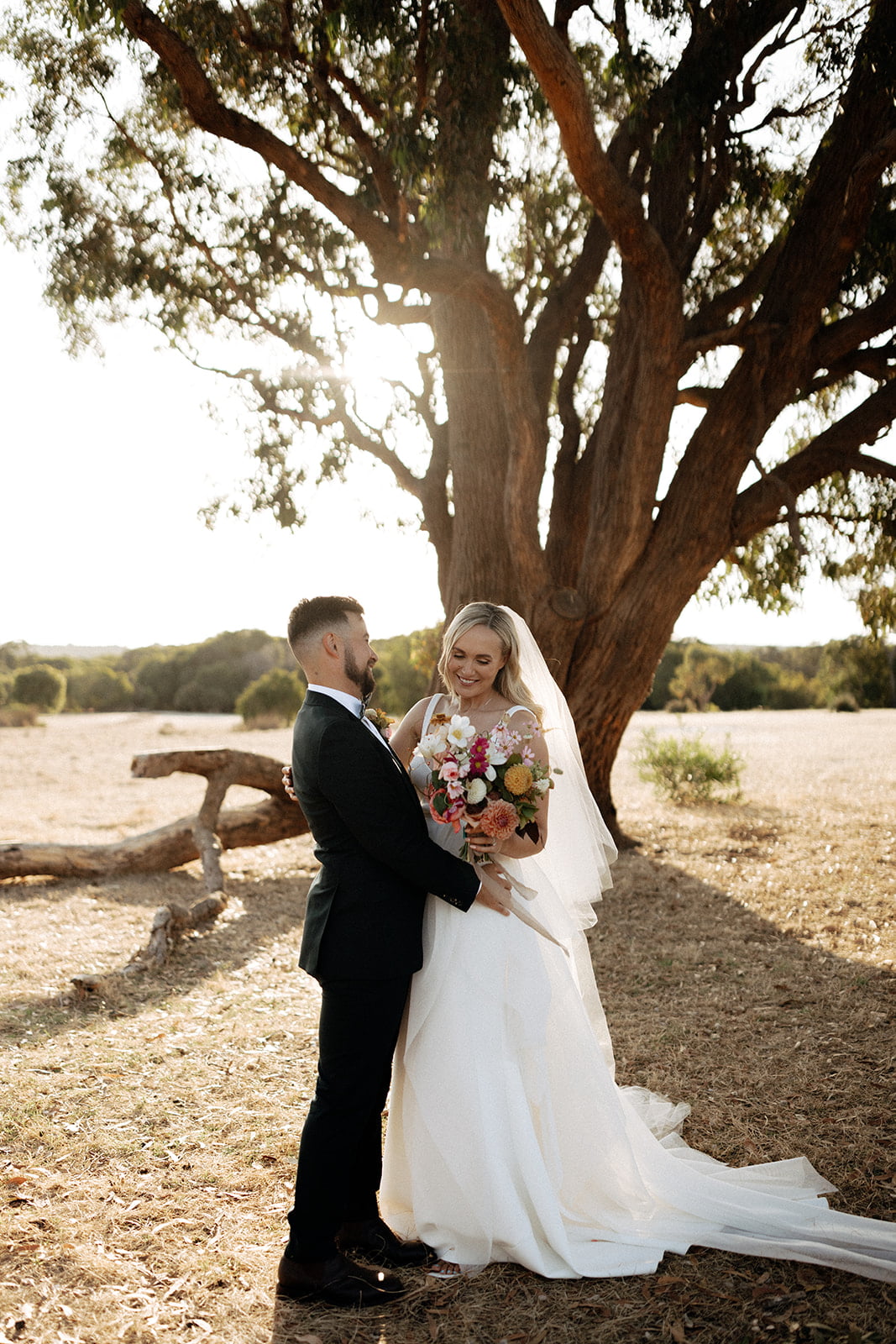 MEMORABLE MOMENT “After the ceremony we snuck away for photos up at Mt Duckworth with Emma. This was a spot that we had cycled up previously (both Sarah and I being keen cyclists). I vividly remember saying many many years ago, a throw away line on a ride up there that when we got married in dunsborough we’d have to go up there to get photos. The intimate time alone up there was amazing in such a hectic day and the photos speak for themselves as they are truly breathtaking.”