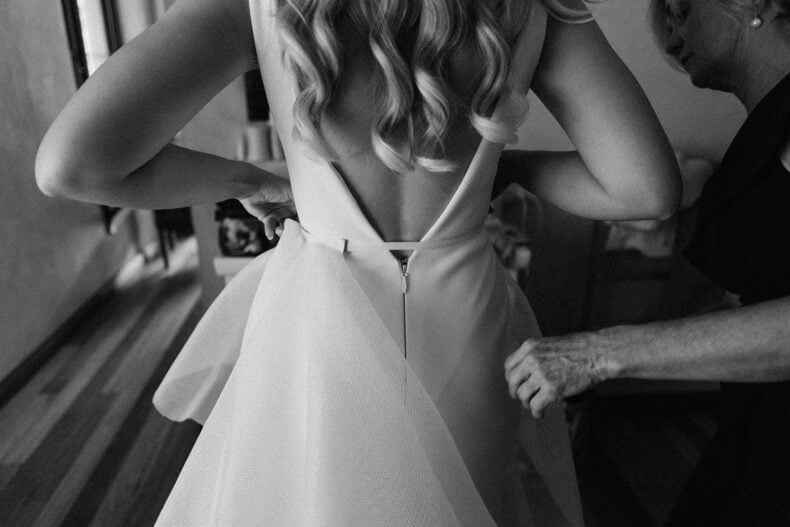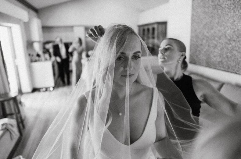 THE DRESS “Armed with a Pinterest board full of ideas, I ventured out with my mum, thinking a simple slip dress might be my ideal choice. As it turned out, that idea didn’t resonate with me at all, and I had a mini style crisis. But after a comforting pit stop for falafels, we found ourselves at Karen Willis Holmes for an appointment. There, we were warmly greeted by Victoria, who quickly got up to speed with my wedding vision. Instead of pressuring me, she encouraged me to have some fun and try on a few random styles. And then, it happened. Victoria disappeared into the back and reappeared with Shelby in tow. It was the dress. They weren’t kidding when they said you’d know when you found ‘the one’. Shelby was elegant and timeless, and to add a touch of flair, we decided on a mesh skirt overlay that perfectly matched our aesthetic. It was a surreal experience, one that transformed a day I had been dreading into an unforgettable highlight that I’ll cherish forever.”