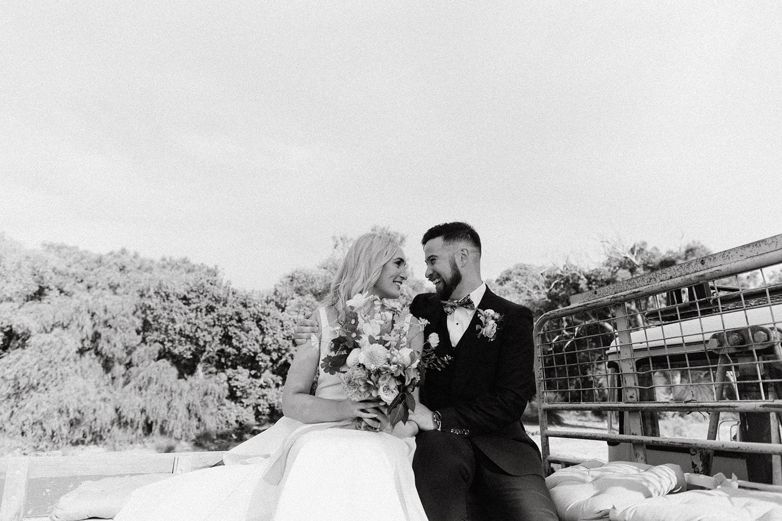 CONTRIBUTING VENDORS Photographer Emma Macaulay Event Planner & Stylist Sarah Fowler Florist Zinnia Floral Designs Stationery Starfish Lane Ceremony & reception venue Solitaire Homestead Catering & food trucks Supper Road, Simmo’s Ice Creamery Dancefloor Cape Events Neon Sign Maisey Collections Lighting Hire Southern Light Event Sound Hire & Entertainment South Sound Events Celebrant Confetti Days Rings Novita Diamonds, Kavalri THE BRIDE Bridal gown & veil Karen Willis Holmes Accessories Linney’s Hair Bridey from Dale James Makeup Brittany Mason Fragrance Aesop Marrakech Bridesmaid dresses Shona Joy THE GROOM Suit Theodore Shirt M.J. Bale Tie Peggy and Finn Cufflinks Cuffed Shoes R.M. Williams Watch Longines Barber His Lid Groomsmen suits Connor Socks Peggy and Finn