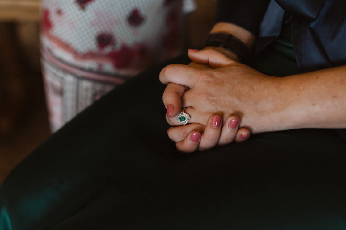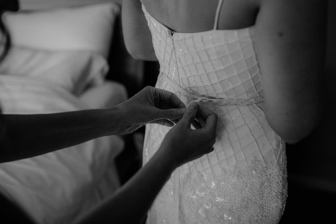 THE DRESS “I looked in what felt like every dress shop in Perth before narrowing it down to two dresses [Karen Willis Holmes]. I’m quite into fashion and have a fairly clear personal style but in looking online I tended to deviate from my usual. My Pinterest taste was a very relaxed floaty style with long undone wavy hair but when I started to try things on it just swamped me. The dresses that suited me were much more fitted with beading and sparkles, more old school Hollywood glamour.”