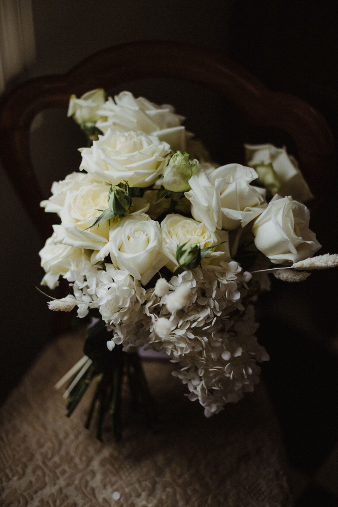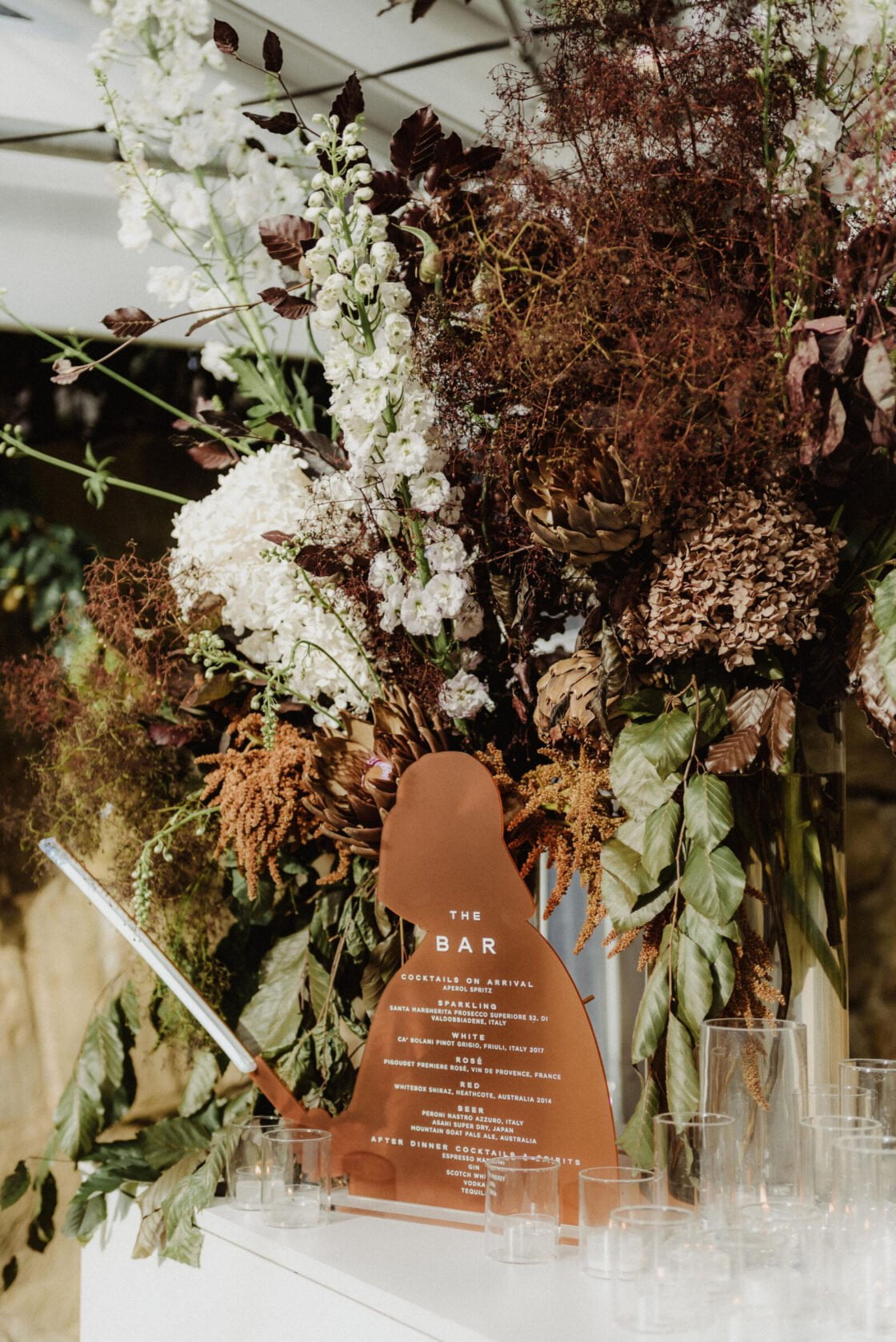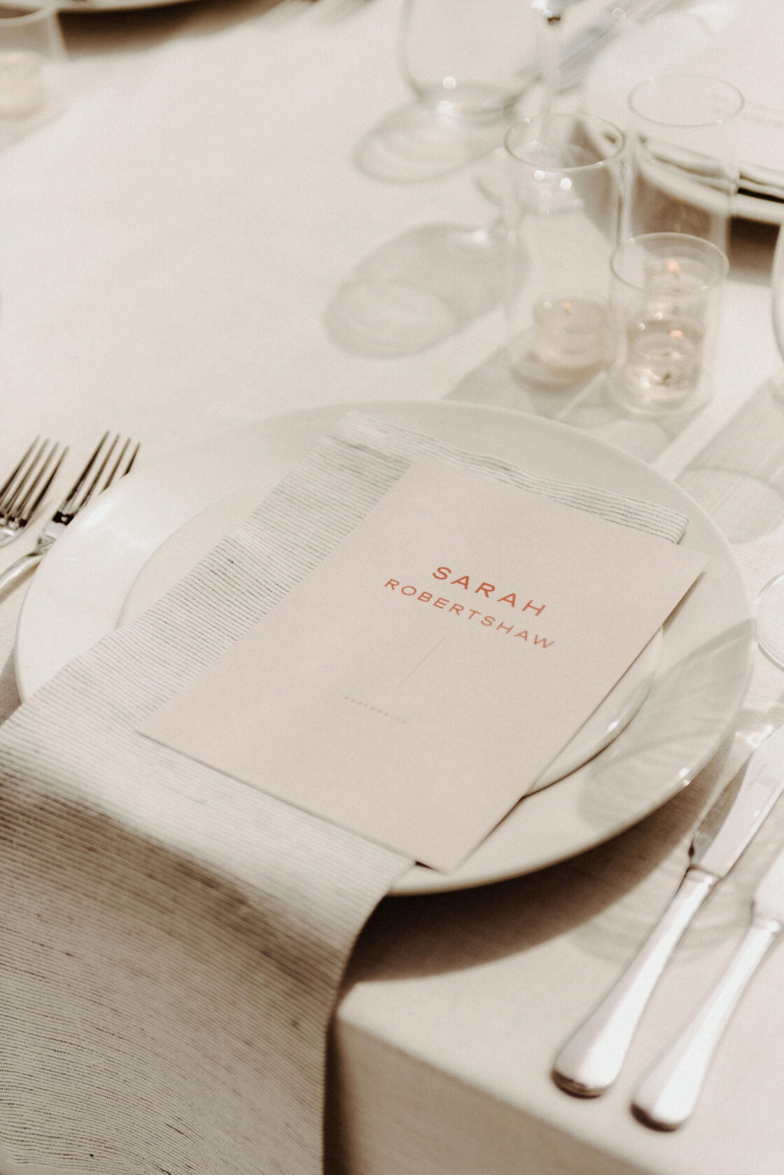 CUTE CUSTOM “Both of our fathers have passed away, so we had picture frames on easels with a collage of each of them. Sarah’s brothers took the role of father of the bride, and during their speech they gifted me a flat cap which is symbolic of Yorkshire, Sarah’s home county in England. We also had white roses dotted throughout the styling – the heraldic symbol of Yorkshire, in ode to Sarah’s Dad and her heritage. And then foil wrapped chocolate ‘guinea’s’ from the famous Betty’s Tea House in Harrogate where Sarah’s family lives.”
