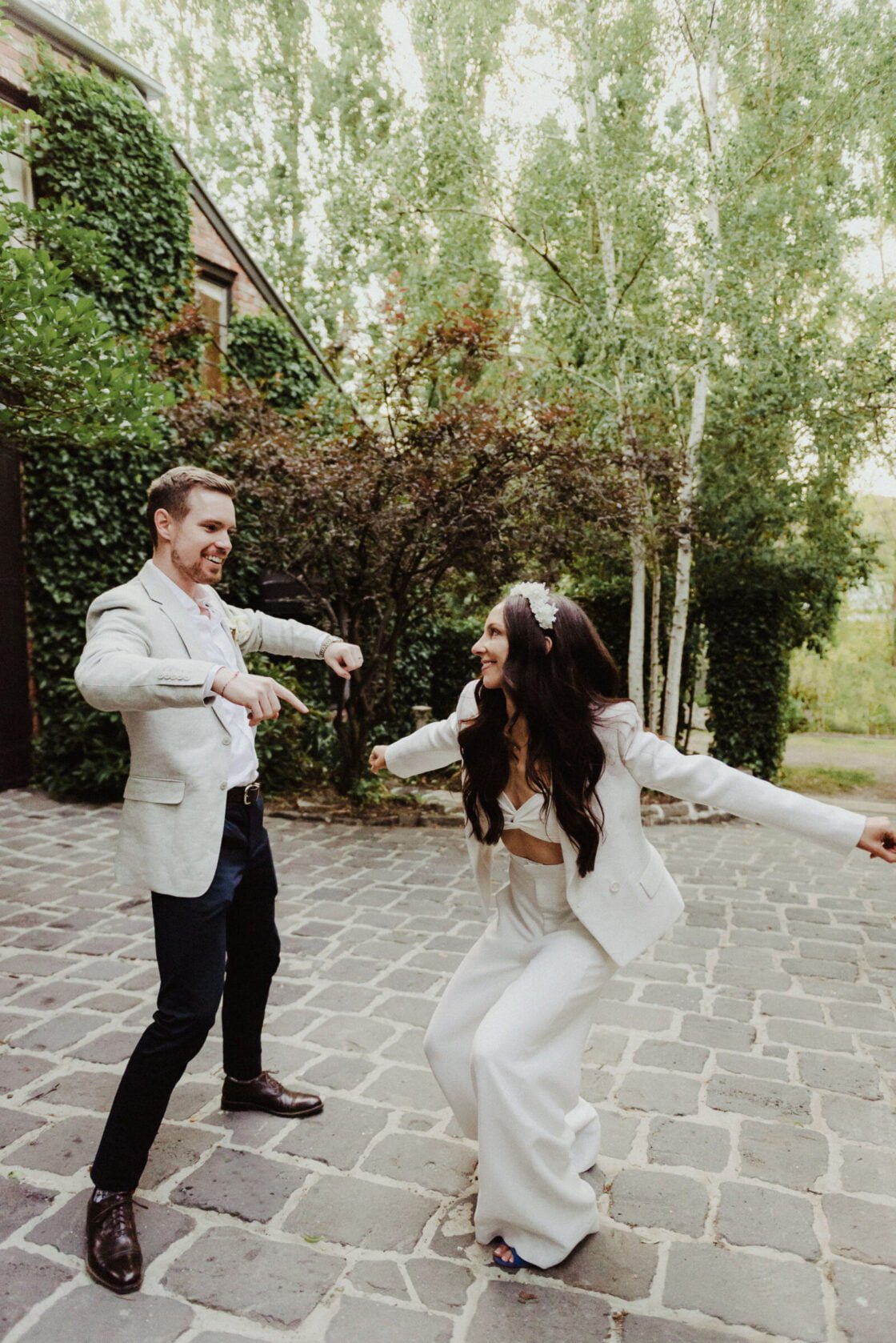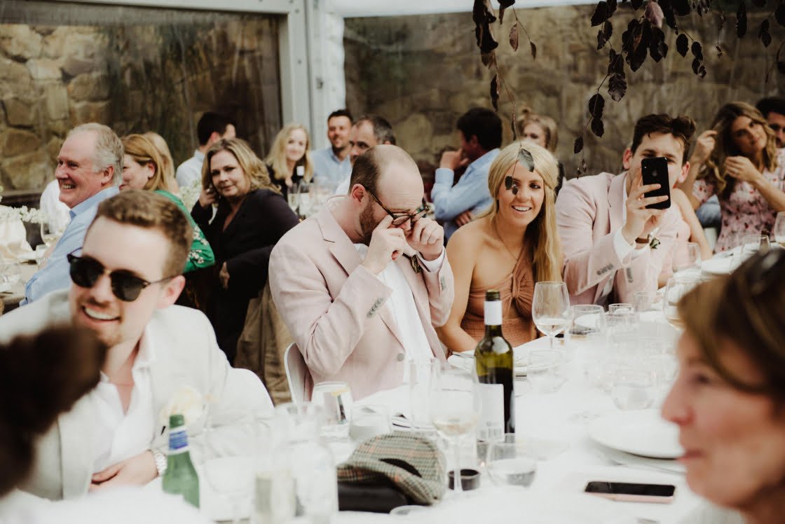 This fun-loving duo got engaged at the top of a mountain, got drunk at a bar, had a nap and then went out for a 13-course meal with wine pairing. At one point, “Scott took a hold of my ring to admire it, accidently pulled it off my finger with such force that it went flying across the restaurant floor and landed under someone else’s table.” So you can already tell this wedding was going to be a good time. Add a few of our fave vendors – She Takes Pictures He Makes Films (on photography and videography), Georgie Boy (on florals) and Dann Event Hire (on well, hire items) – and it’s a recipe for fun with a capital F. So scroll down for all the good stuff…