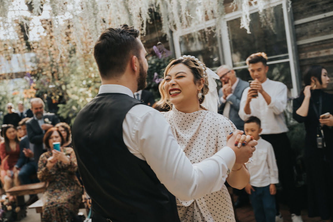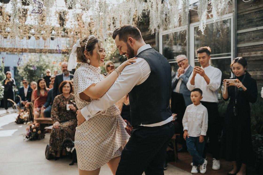 MEMORABLE MOMENTS “We have two favourite memories. One was when we were exchanging our vows and our dog Berry decided to have an asthma attack and interrupt us. It was very funny and made the experience light, enjoyable and authentically us. The other favourite moment was when we were taking our final photos outside the venue and a random pigeon decided to poo on Matt.”