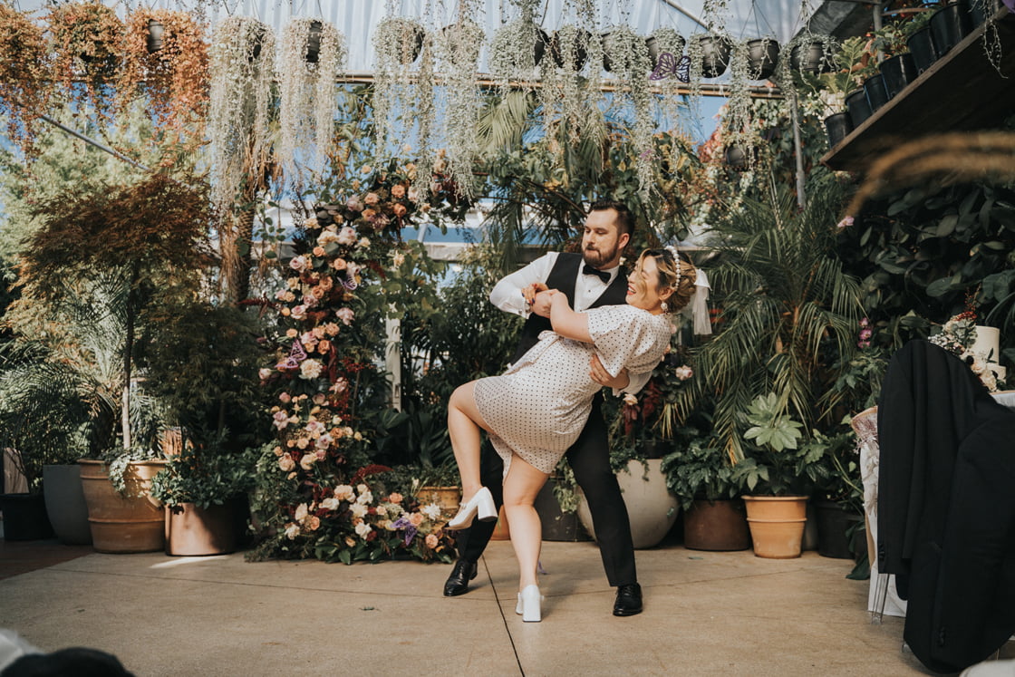 THE VENUE “I like Glasshaus Inside because it’s urban and also very lush and green. It’s like an emerald gem inside of the city. The venue was originally a nursery for plants, and the owners allowed us to use these plants to decorate the surroundings. This allowed us to create a wonderful feeling of being in nature. The selection and positioning of these plants were fantastic and I felt like a lot of thought went into the orientation of everything.”
