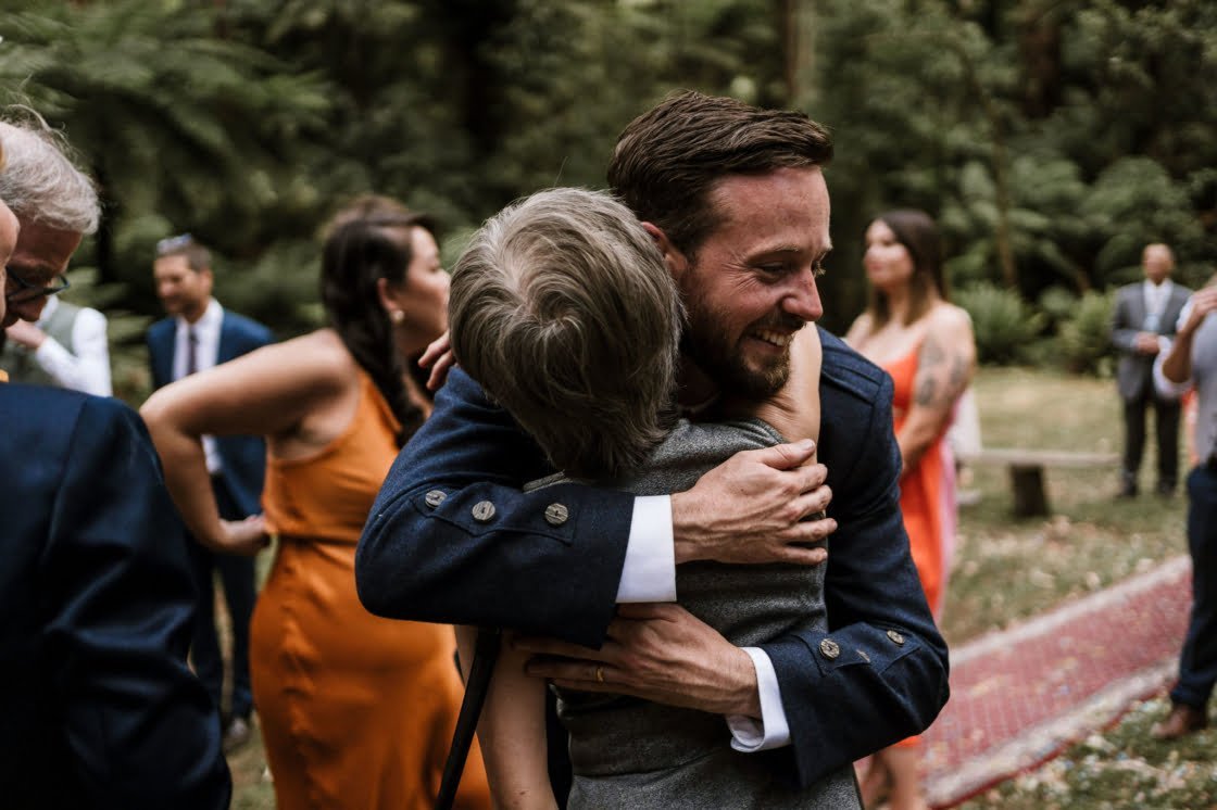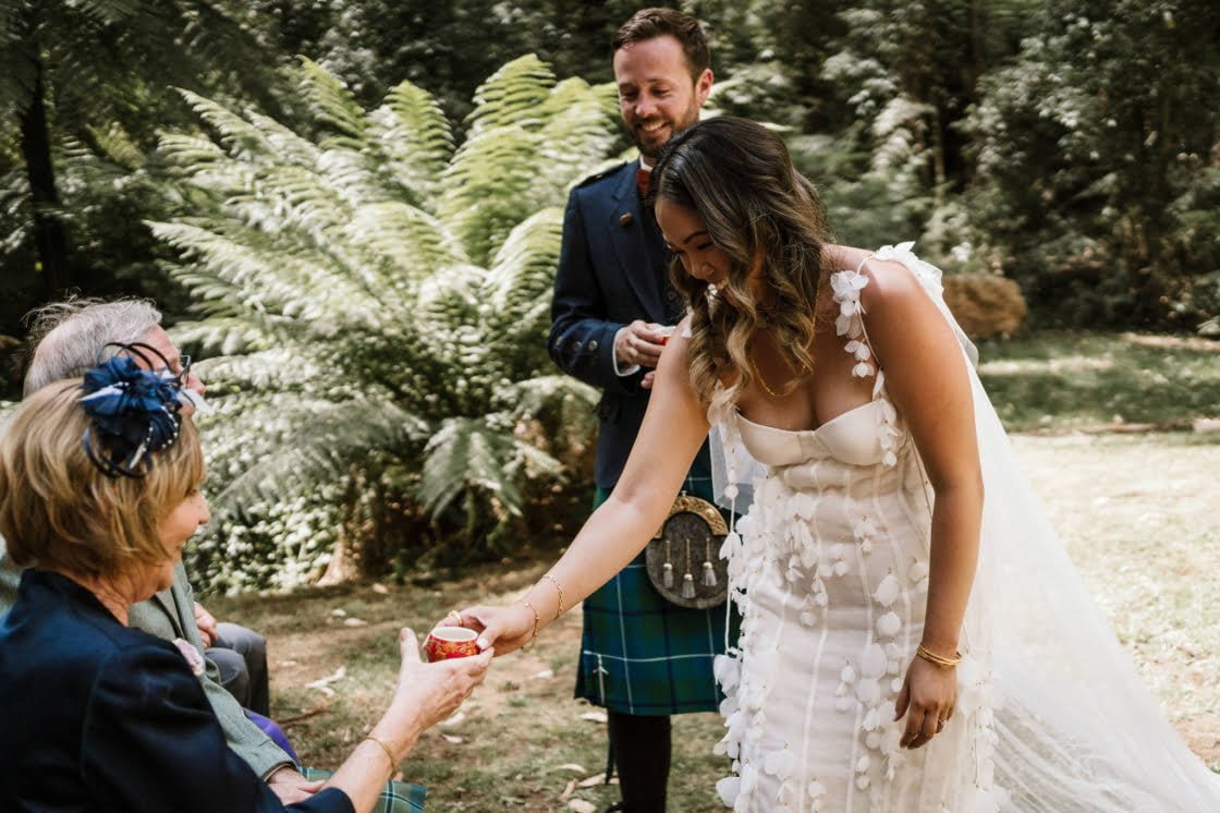 CONTRIBUTING VENDORS Photographer: Gold and Grit Photography Cinematographer Tie The Knot Wedding Films Florist TD Flora Ceremony & Reception Toolangi Heights Catering Cookshop Rotisserie Cake Mothers of the couple Lighting & Sound Hire Warehouse Sound Systems Entertainment Fee B-Squared Celebrant Christine Kha Rings Black Finch Glamping Tents Swell Shelter Biodegradable confetti The Whole Bride THE BRIDE Gown Zimmermann Alterations Linda Jane Doble Veil Linda Jane Doble Shoes Tony Bianco Earrings Kitte Hair & Makeup Lucie Stauff Fragrance Le Labo Bridesmaid dresses Ginia via Before March, Finders Keepers via BNKR Bridesmaid shoes Billini Bridesmaid gifts Kitte (earrings), resin wall hangings (bride) THE GROOM Jacket, Kilt, Kilt Accessories & Shoes House of Henderson Shirt David Jones Tie OTAA Groomsmen Kilts Australia Wide Kilt Hire Groomsmen gifts Wilkins and Kent (wooden native animal pins), Denver & Liely (whisky glasses)
