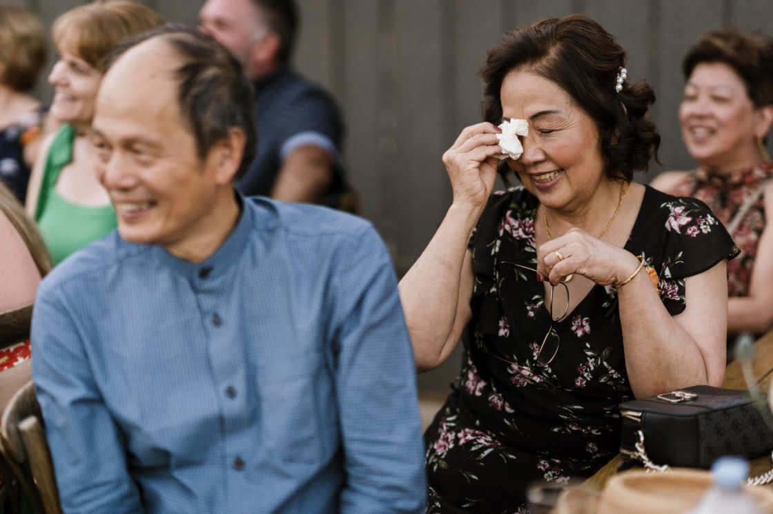 MEMORABLE MOMENT “I loved that my whole family including my parents walked down the aisle separately and I walked down myself. No one was giving me away except myself! Our celebrant speaking Chinese and seeing the big smiles on my family’s faces was also a standout, as was Andrew saying ‘I do’ in Cantonese, I snorted a little too loud at this!”