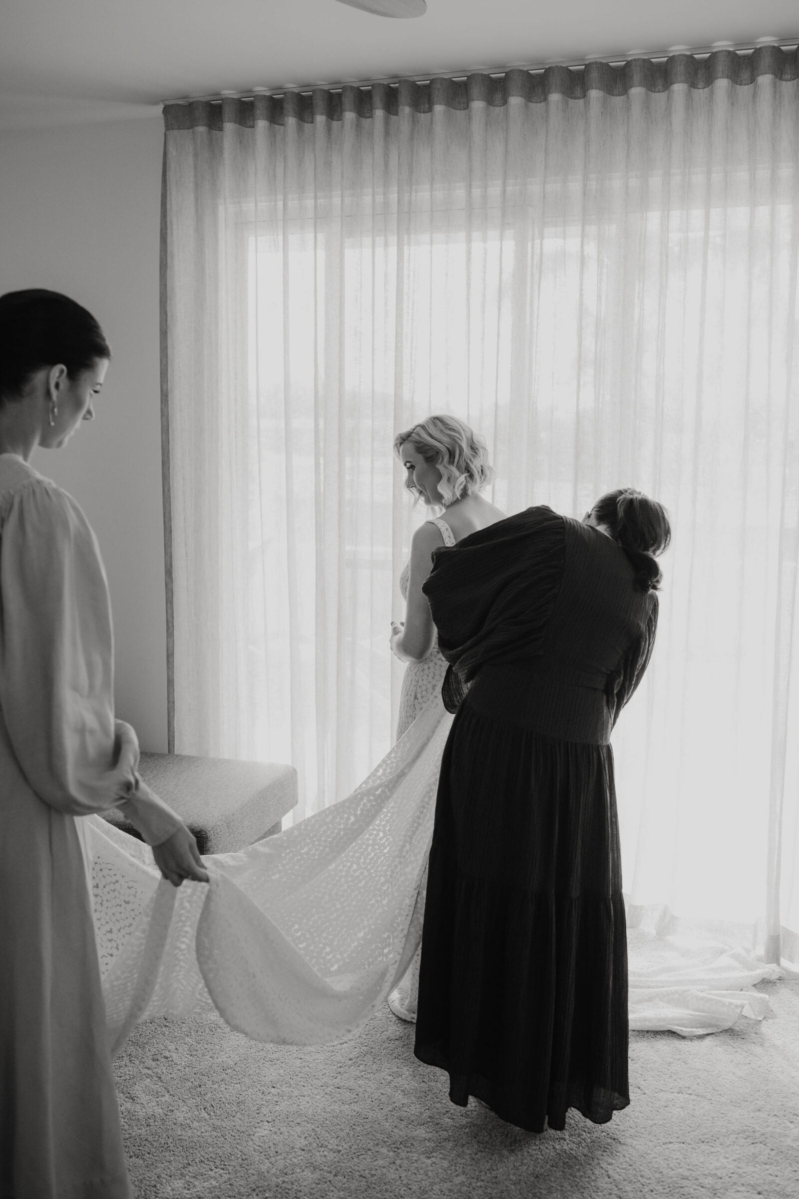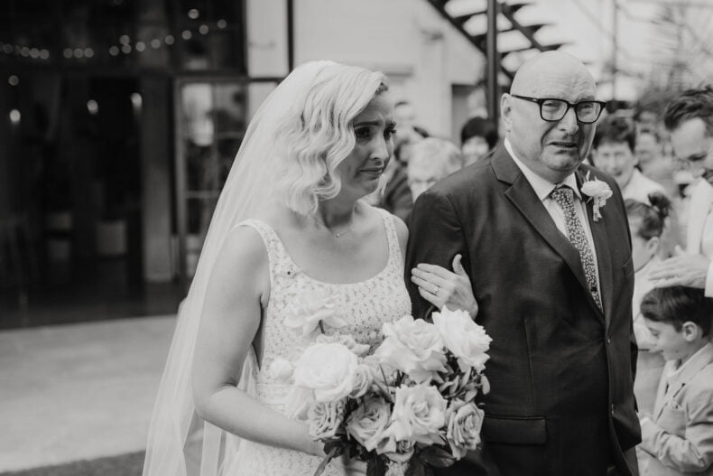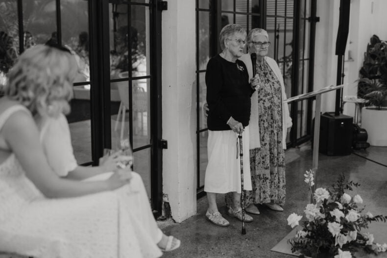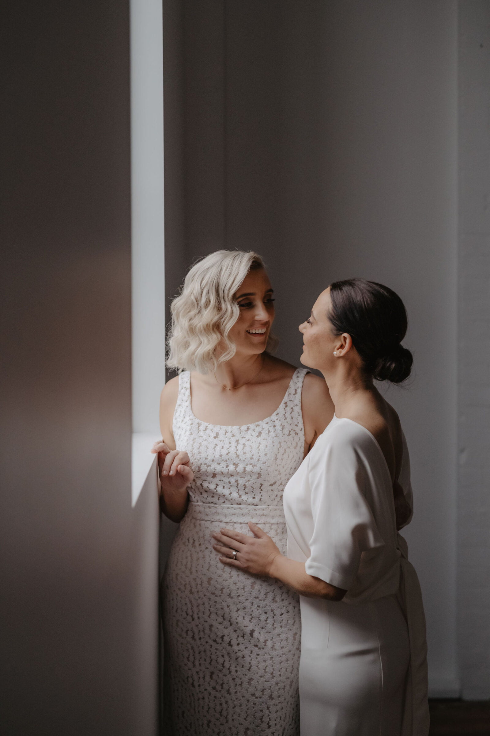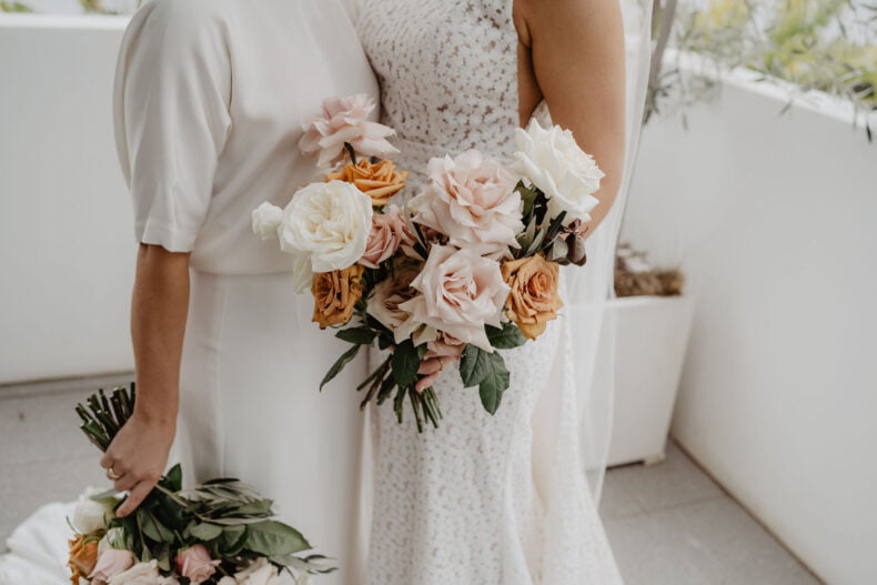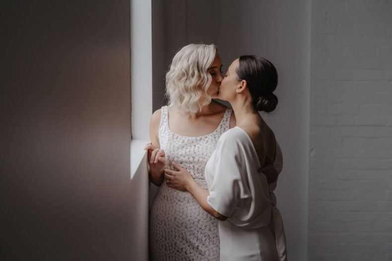 Shan and Cass crafted the perfect wedding that was them to a tee. From getting ready together, to their aisle entrance and outfit changes, this day was absolutely and totally theirs. “We wanted to include our fathers in walking us down the aisle, but rather than them ‘giving us away’ (as we are strong independent women), they walked us halfway down, before Cass and I walked the rest of the way together,” the newlyweds shared with us. Yas gals! Here. For. It. Locking in Taylor Kezia for snaps, Gwen Flower Co for blooms, Bared Footwear for heels, LUV Bridal for Shan’s dress and Cut a Rug to supply the tunes, were all very clever moves, too. Scroll down for this pair’s incred day…