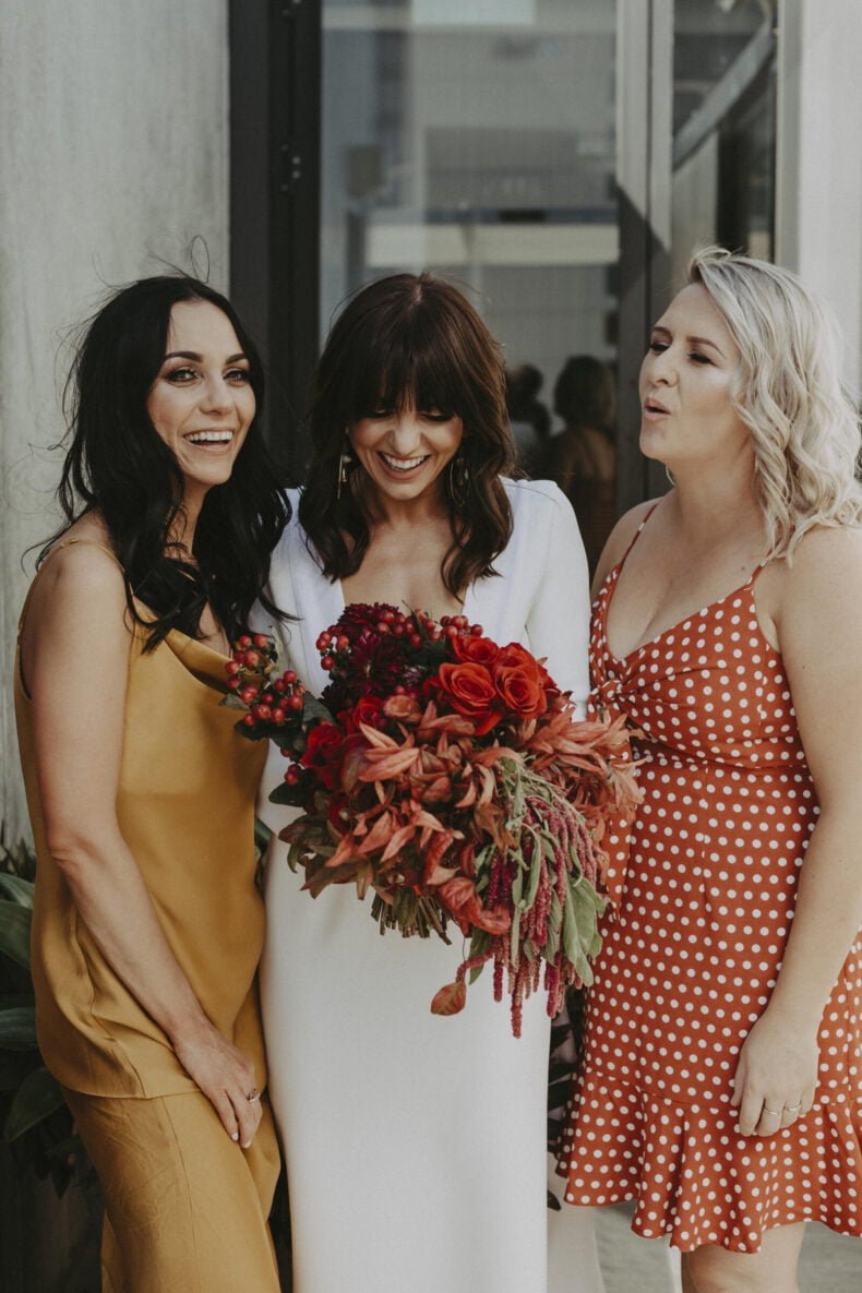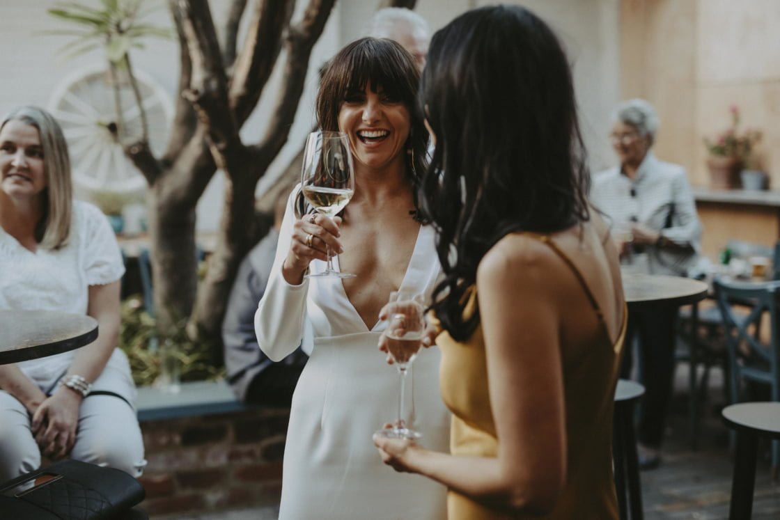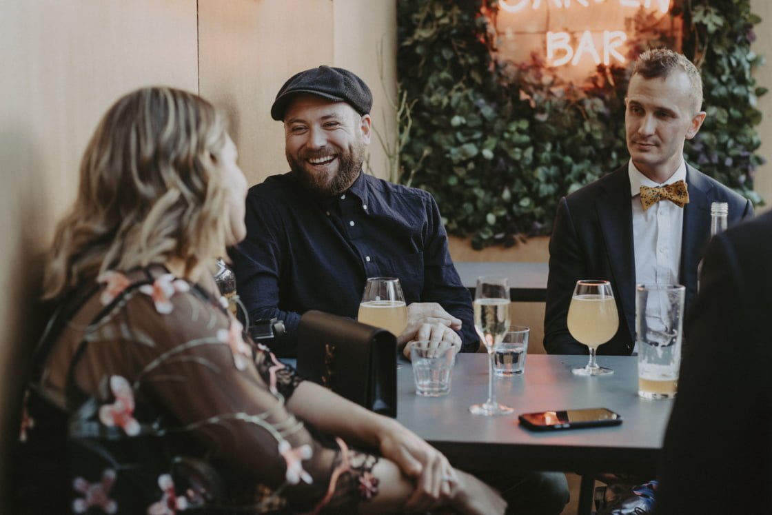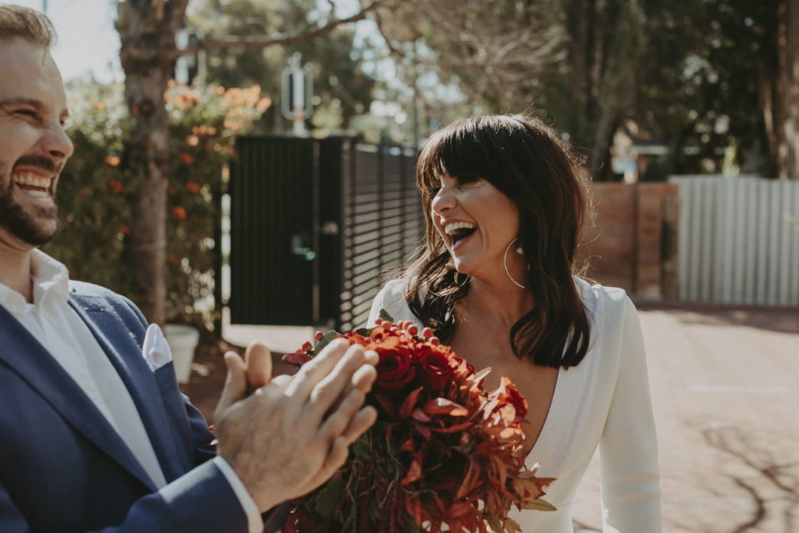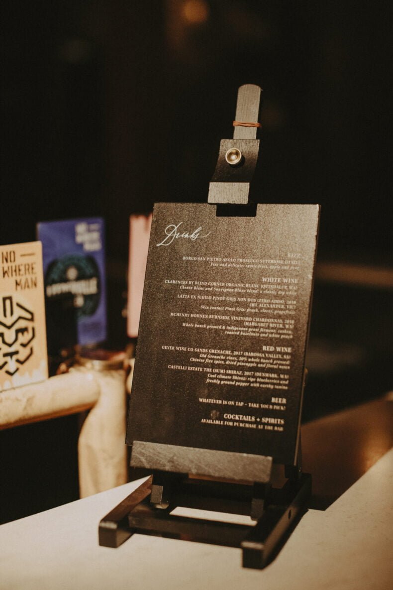 THE VIBE “When we canned the idea of the big, beautiful Pinteresty warehouse wedding (those weddings are AWESOME by the way! Just not really us) I was a bit lost as to where to start next. And at the risk of sounding super corny, our inspiration was James Simmons (our photographer) ethos/logo of “break the rules”. I booked James before we’d even settled on a date – basically we chose the date based on his availability! I LOVED his story-telling style and that was the most important thing to us, having a really fun day without the typical/traditional ceremonial stuff and having the memories captured beautifully. So, rather than having a large bridal party with matching dresses, suits & flowers, or a big tiered cake and an awkward first dance, we took our inspiration from breaking the rules and doing what we love to do. We love to go out to our favourite small bars & eateries in Perth to indulge in good food and drink delicious, interesting wines. So that’s what we did for our wedding!”