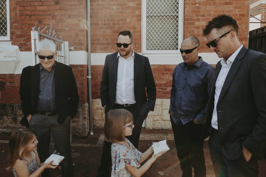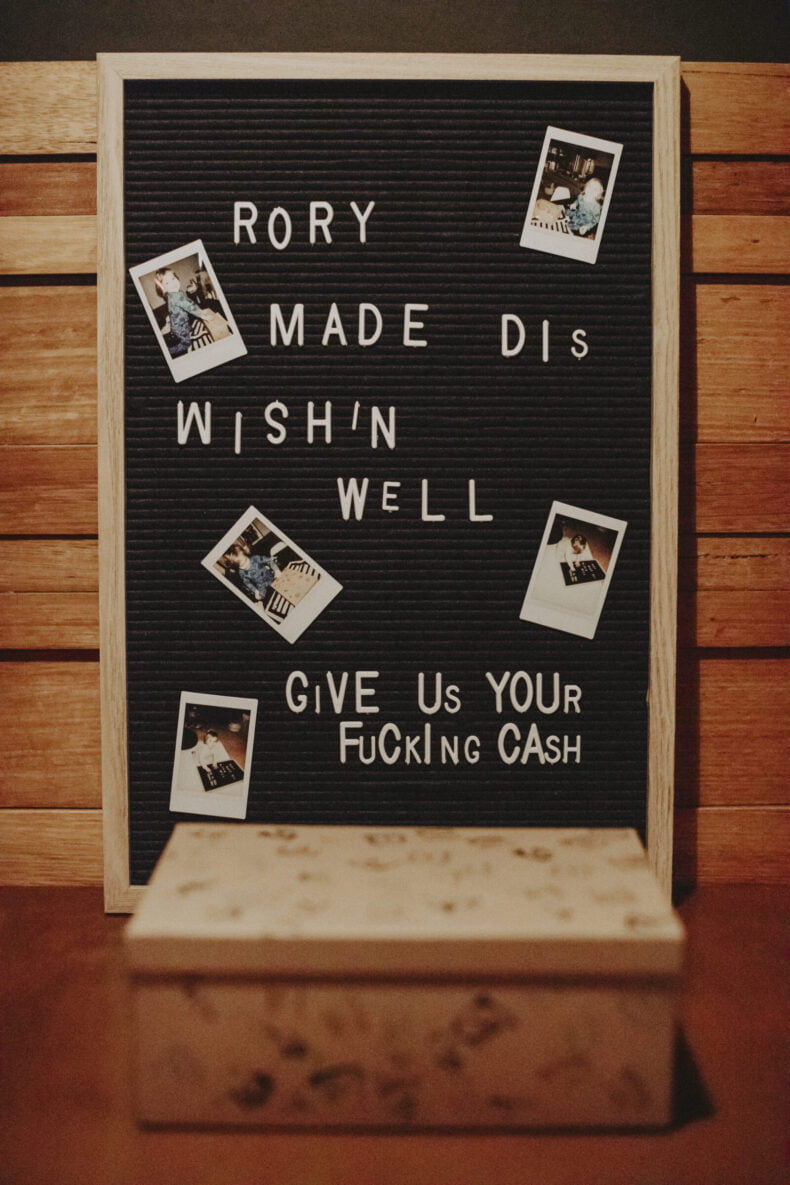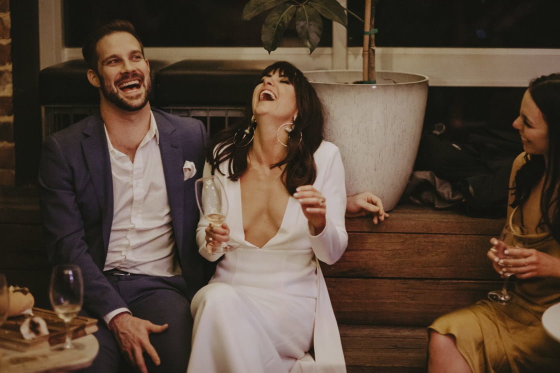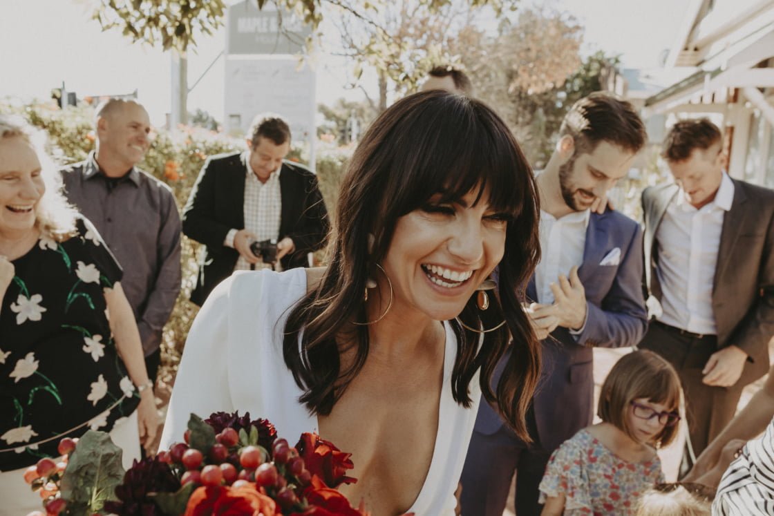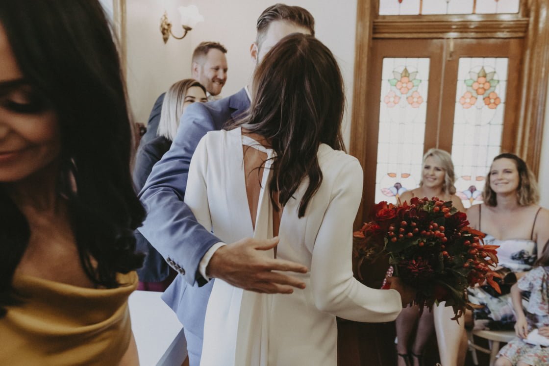 THE VIBE “When we canned the idea of the big, beautiful Pinteresty warehouse wedding (those weddings are AWESOME by the way! Just not really us) I was a bit lost as to where to start next. And at the risk of sounding super corny, our inspiration was James Simmons (our photographer) ethos/logo of “break the rules”. I booked James before we’d even settled on a date – basically we chose the date based on his availability! I LOVED his story-telling style and that was the most important thing to us, having a really fun day without the typical/traditional ceremonial stuff and having the memories captured beautifully. So, rather than having a large bridal party with matching dresses, suits & flowers, or a big tiered cake and an awkward first dance, we took our inspiration from breaking the rules and doing what we love to do. We love to go out to our favourite small bars & eateries in Perth to indulge in good food and drink delicious, interesting wines. So that’s what we did for our wedding!”