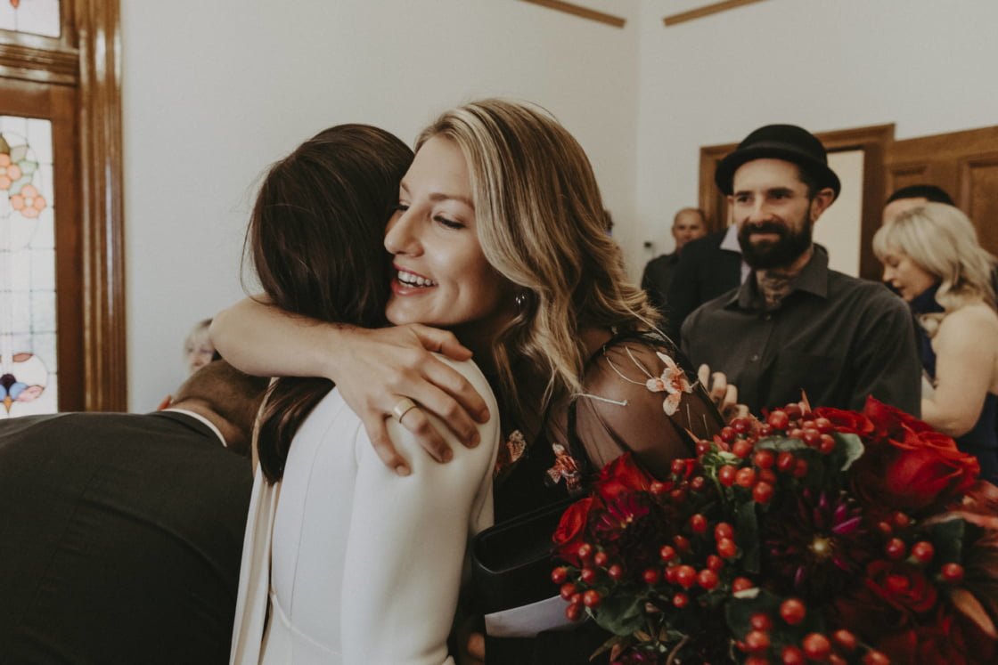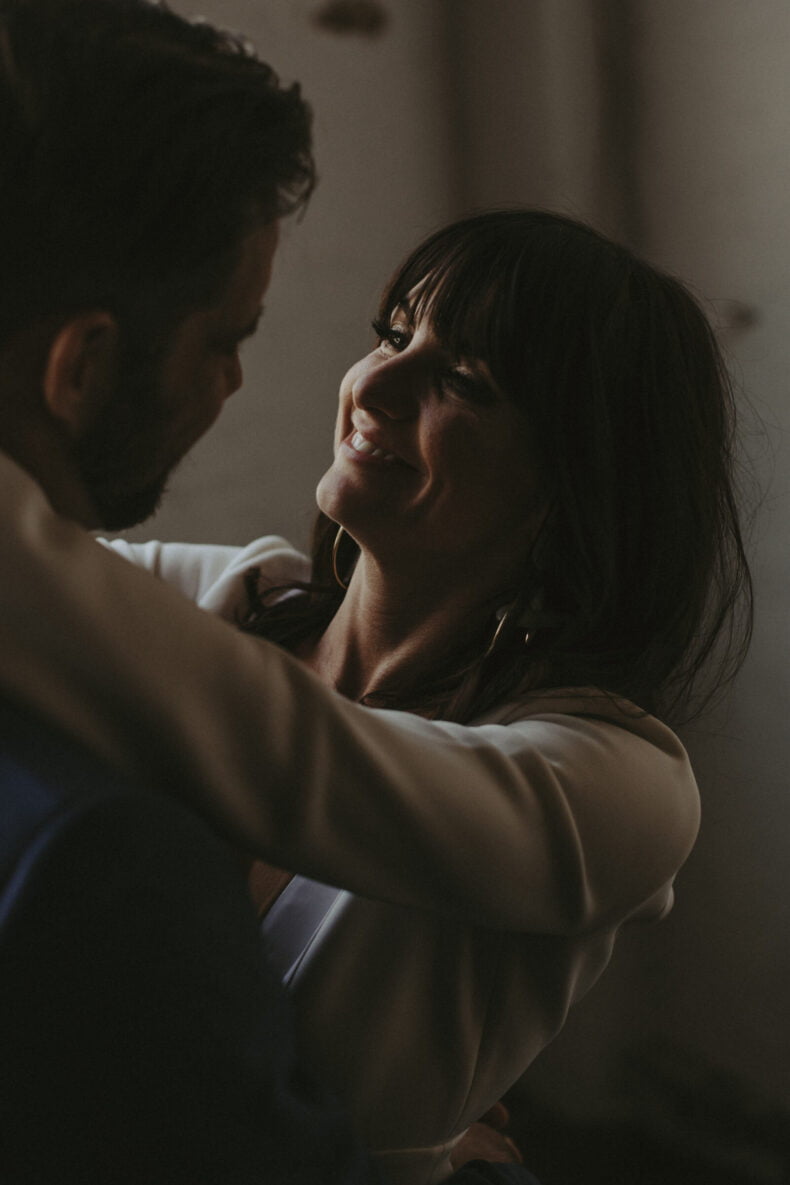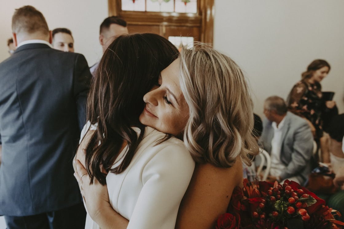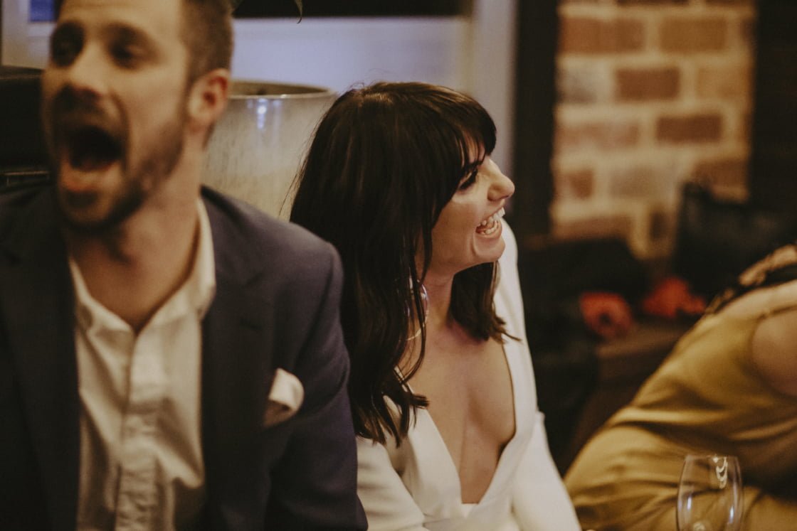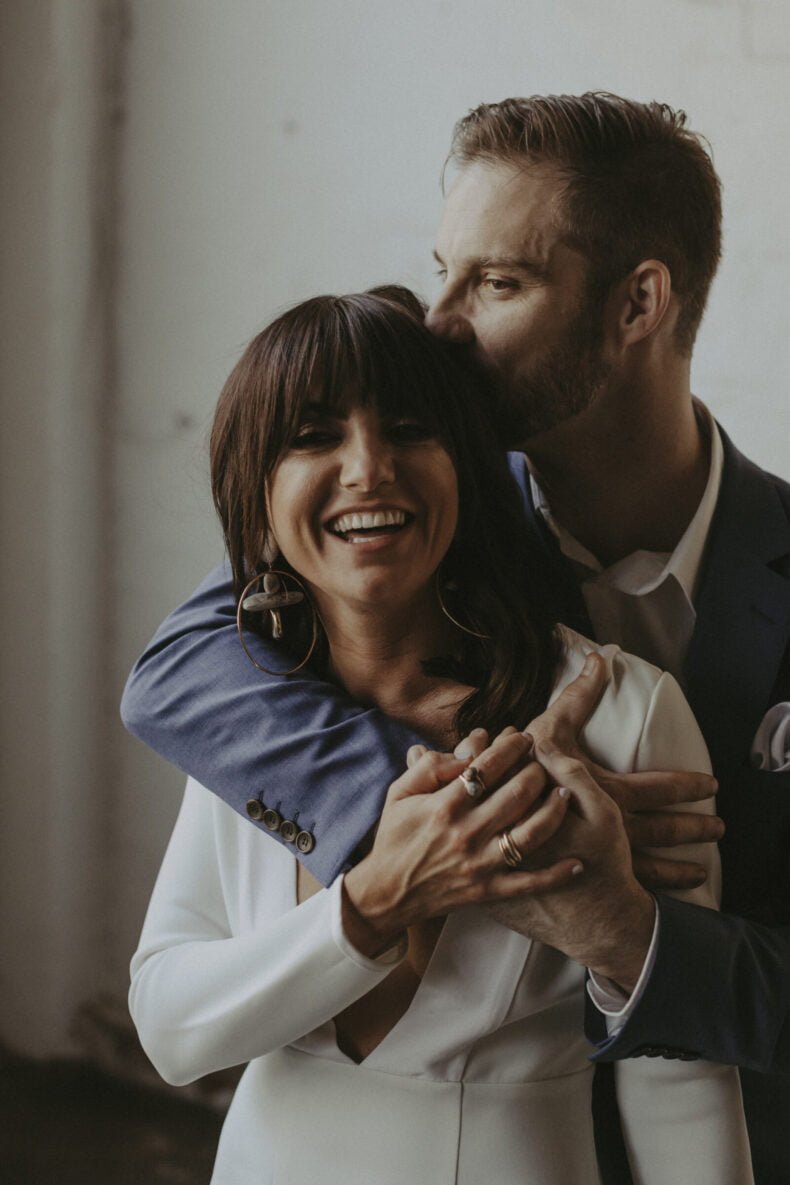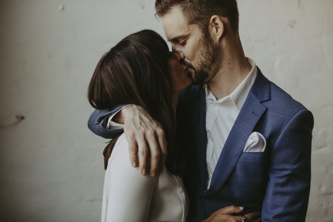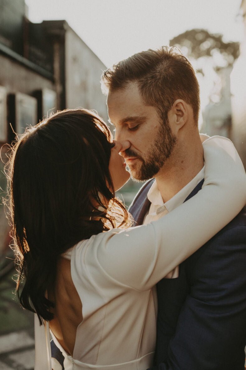 FAVOURITE MOMENT “I loved it when Ben and I went for our photos in a little alleyway around the corner from our reception. Prior to that, it had all been a bit of a whirlwind and go-go-go but by that point, we’d had a couple of drinks and had relaxed into the day a bit more, and also felt a lot more comfortable in front of the camera. James, and his second photographer Manny, did the most amazing job at helping us feel at ease, but when you’re not used to being in front of a camera it does take an hour or so to just let go. This hour or so we were away for before the reception started was a beautiful time in the afternoon and it was so great having that one-on-one time with Ben just laughing, cuddling, kissing and feeling so loved up. You can see all of that in the photos that James captured from that little sesh. I love looking back at them.”