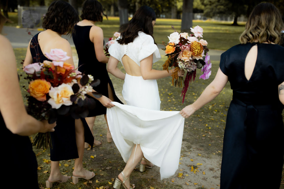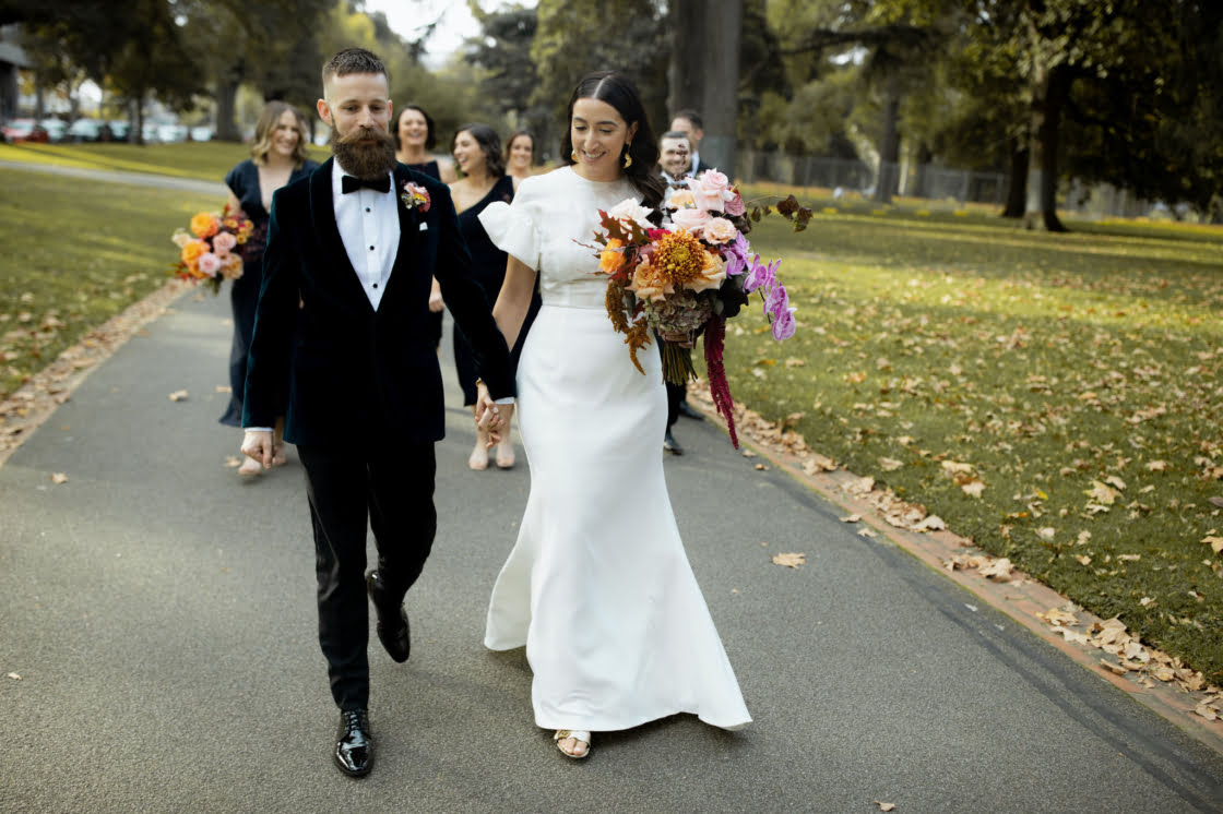 CONTRIBUTING VENDORS Photographer I Got You Babe Florist Pomp and Splendour Stationery & Signage State of Elliott Ceremony, Reception & Catering Panama Dining Room and Bar Cake Zephyr & Bloom Wedding favours Three Foxes (cocktails) Hire Items Table Art (tablecloths) Entertainment Hey Jack Celebrant Charis White & Co. Rings Black Finch Transport Kombi Haus THE BRIDE Gown Alca Line Bride Bridal Boutique Bluebell Bridal Reception Top & Pants Arnsdorf Robes Sleeper (Simone), Big W (bridesmaids) Shoes Gucci (ceremony), By Far (reception) Earrings By Nye Bracelet & Ring Lucy Folk Hair & Makeup Valentina Arjona via Tonic Hair & Makeup Agency Bridesmaid dresses Bec & Bridge Bridesmaid shoes Betts, Jo Mercer, Spurr, Diana Ferrari Bridesmaid gifts Reliquia Collective (earrings) THE GROOM Suit, Shirt & Bow Tie M.J. Bale Shoes Aquila Barber Barber Black Sheep Groomsmen suits Opal Formal Wear