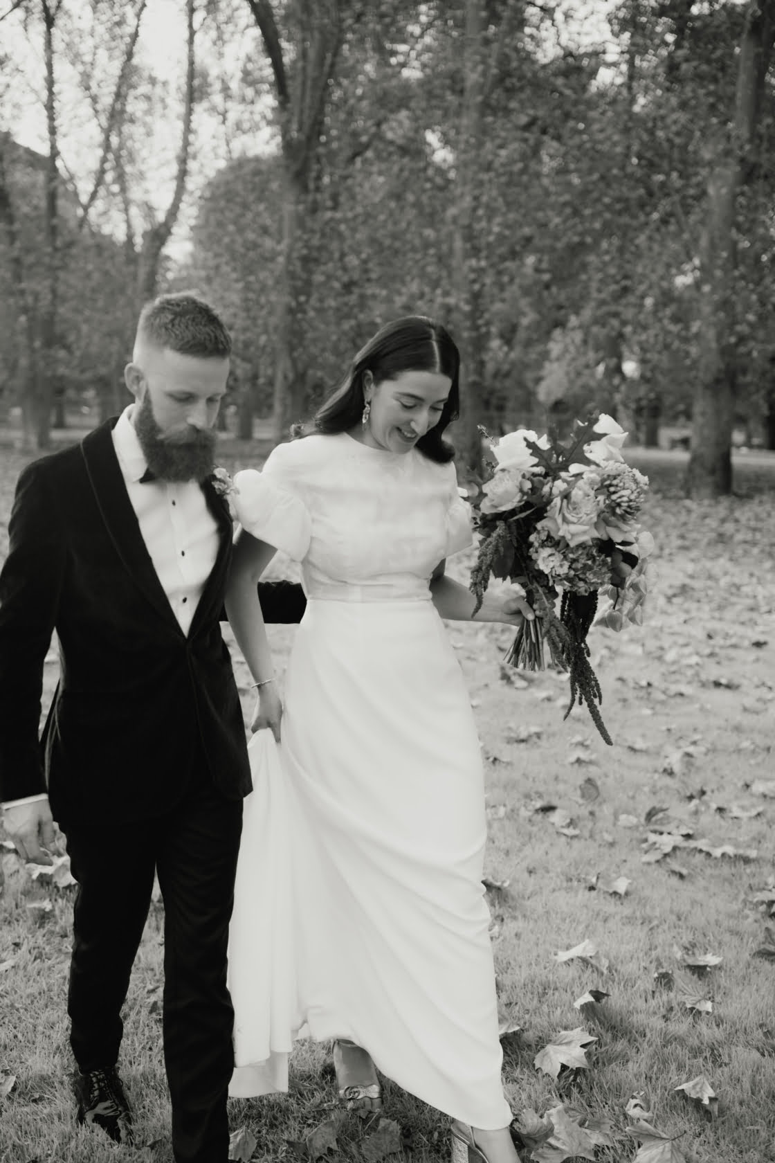 THE PROPOSAL “We were never too fussed about getting married. Our families would always ask about it but we never felt like it was something we had to do. After being together for almost a decade we started to feel that it would be nice to bring our families and friends together and have a celebration. We just decided one day to book an appointment at a jeweller that I had walked past lots of times – Black Finch. We designed the ring together, which was really special, and then Martin went and picked it up when it was ready without me knowing. One rainy Saturday afternoon, we were just hanging out in our apartment. Martin surprised me by tying the ring to our rescue greyhound Finn’s collar. Poor Finn has never really been good at following commands and just ran around the apartment until I eventually got the hint!”