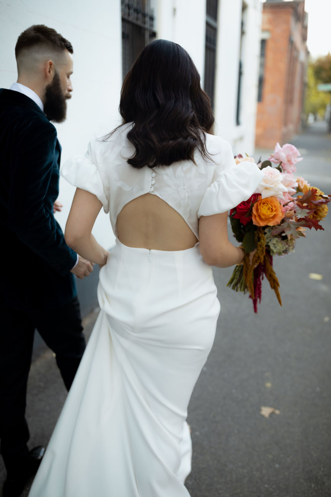 THE DRESS “I was really nervous about the process of finding a dress because I am so indecisive! I knew I wanted something fun and not overly traditional. I first saw Alca Line Bride’s Darcy dress on Instagram and fell in love with the sleeves. I thought I might need to make a trip to NSW where Amy, the designer, is based, but Bluebell Bridal boutique in Melbourne just happened to be stocking the dress at that exact time. It was meant to be!”