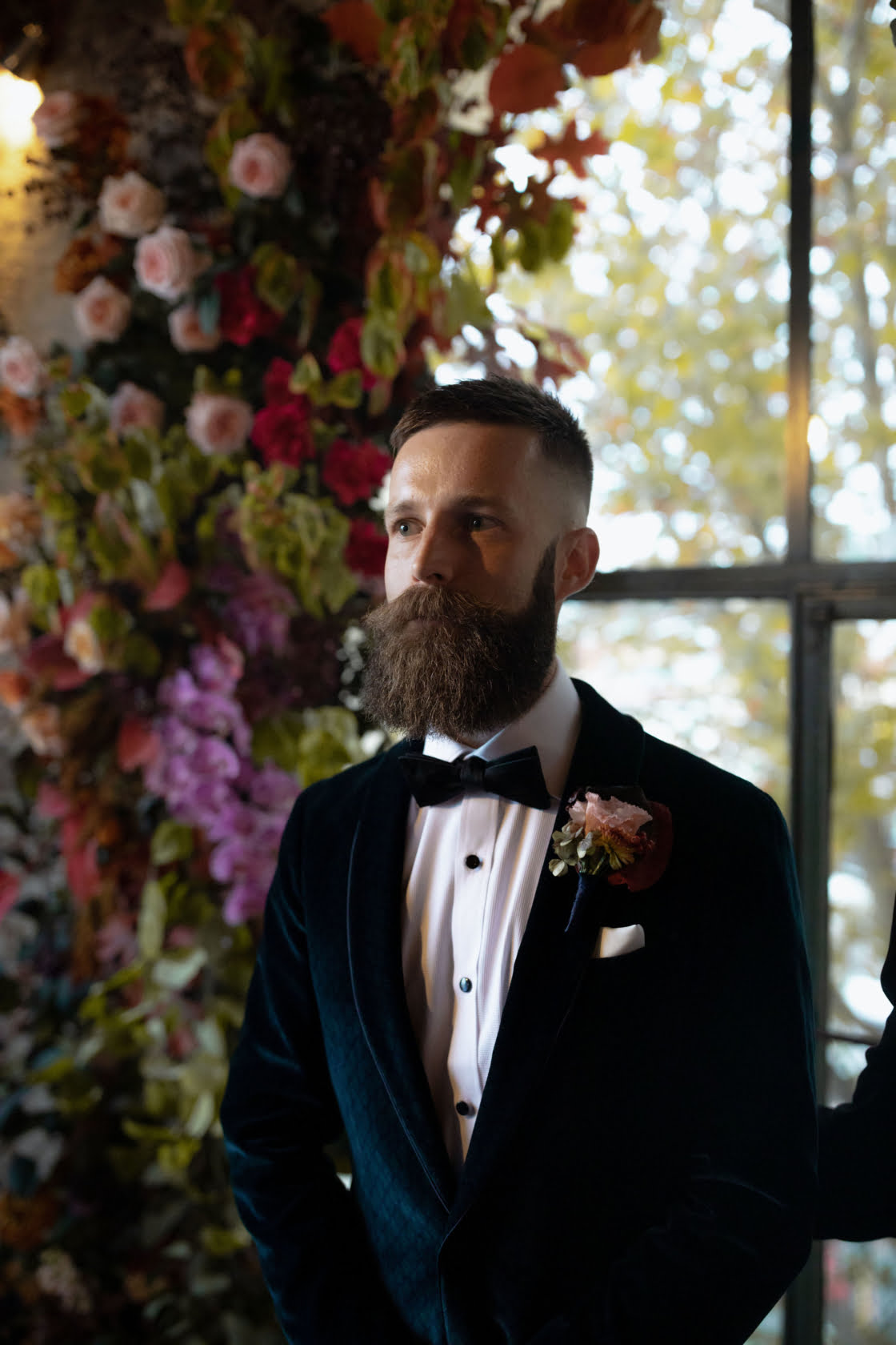 THE SUIT “Martin spotted his navy velvet jacket on M.J. Bale’s website one afternoon, not that far out from the wedding. We popped into the store and they were so helpful – his whole outfit was complete in less than an hour!”