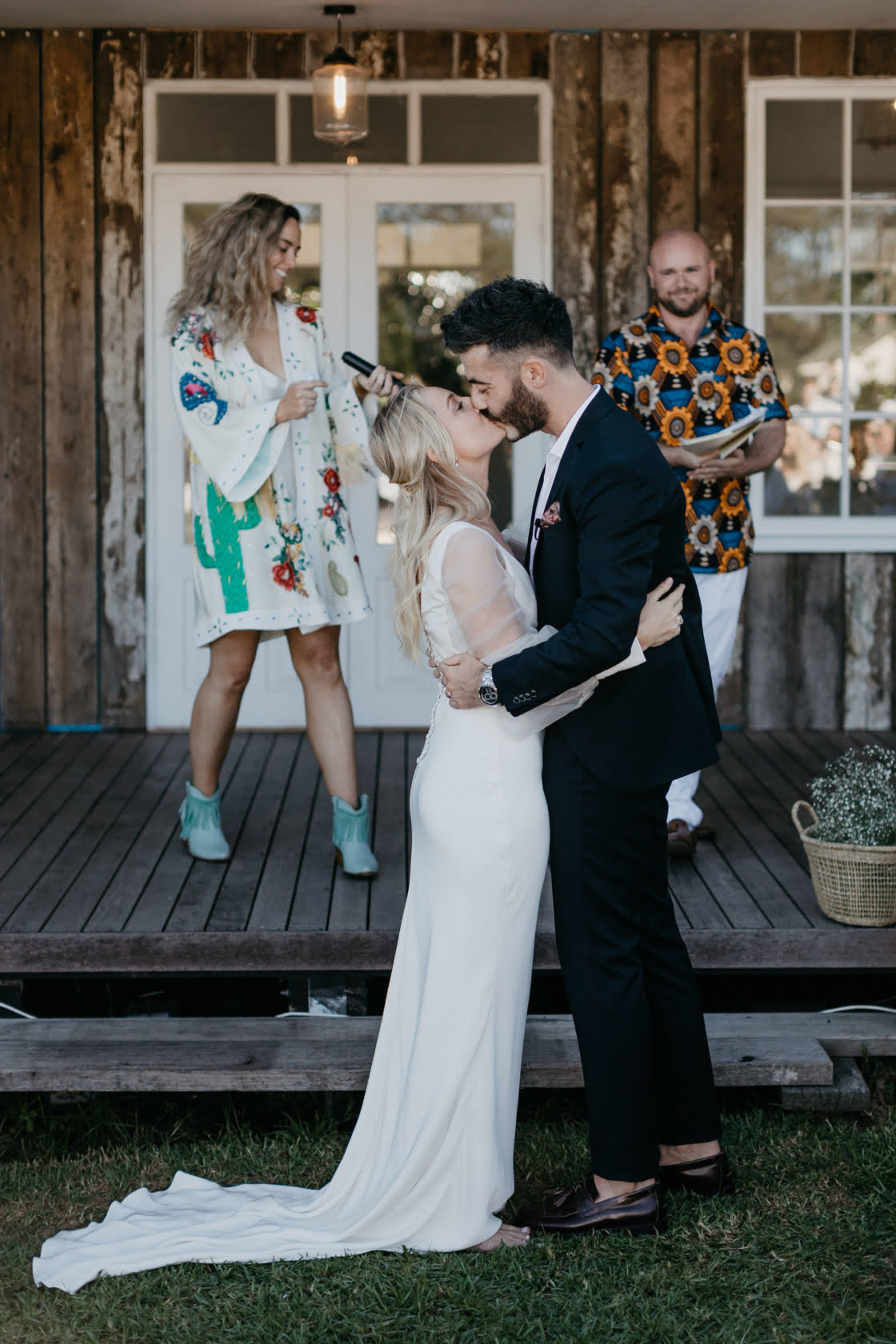 Channelling chill, Su and Neil got married barefoot, by their closest friends, in what appears to be one of the most relaxed days we have seen to date. Despite the carefree vibes, Su found herself with a Gromzilla on her hands. Said Groomzilla got his way in the end, walking down the aisle to his own songs. Neil’s boy’s strut their stuff to George Michael’s ‘Wake me up before you go go’ whilst Neil followed solo, dancing down the aisle to James Brown ‘I Feel Good’. The bride eventually got her moment, cruising down the aisle in a custom Amy New Bridal gown. All’s well that ends well, eh? There to capture (and enjoy) the good vibes was the couples fave vendor, Blaise Bell. His stunning captures await your gogglers below…