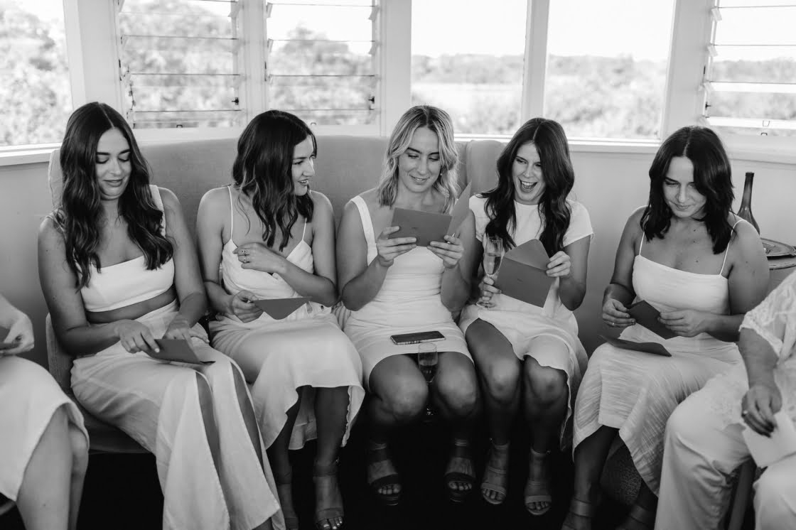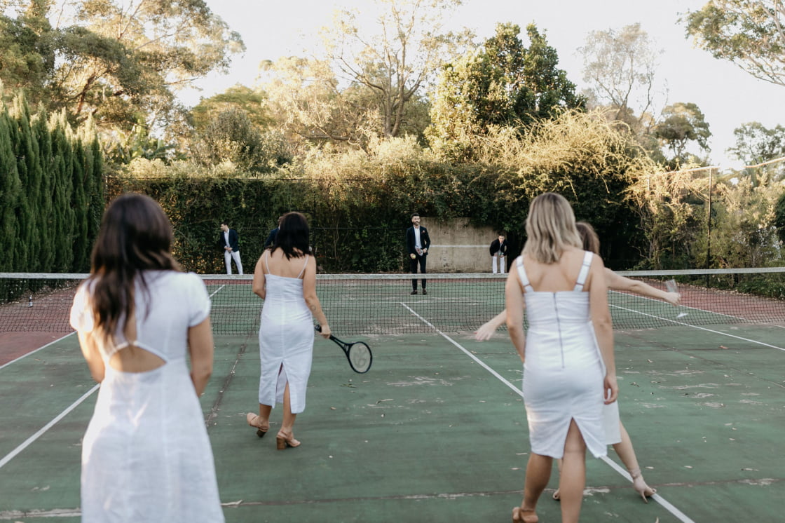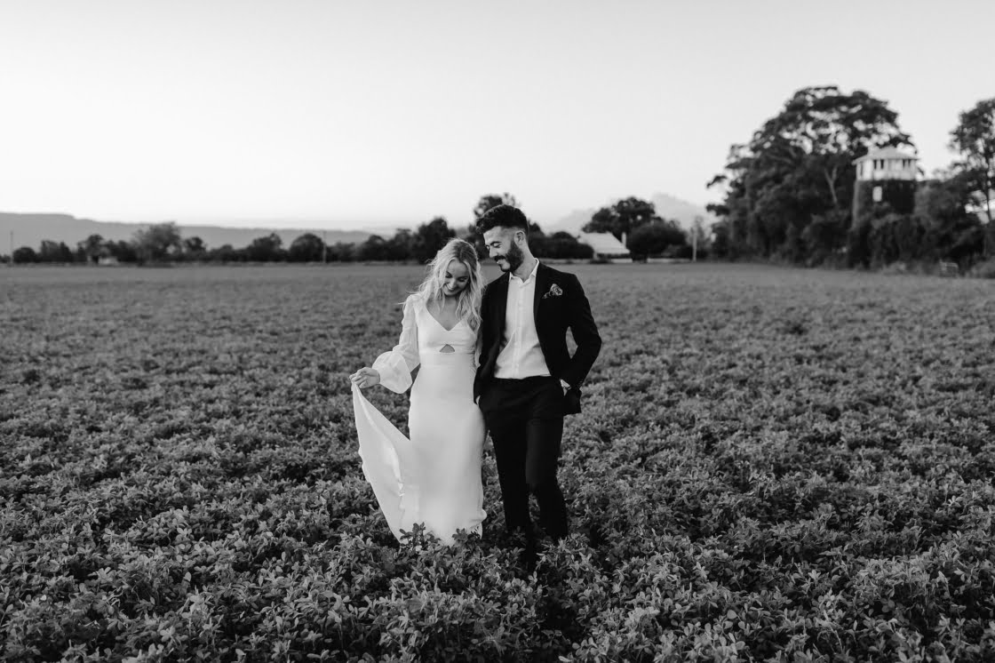 CONTRIBUTING VENDORS Photographer Blaise Bell Photography Cinematographer Cedric Jean-Baptiste Venue Merribee House Catering Rustic Table Catering, Bondi Tony’s Burgers Cake Flour and Stone Entertainment Dave Kuczynski Sound Hire Light Sounds BRIDE Dress Amy New Bridal Earrings Brie Leon Necklace Sarah and Sebastian Hair Ash Croker Makeup Nadine Monley Bridesmaid Dresses Bec & Bridge, Venroy, Zimmermann GROOM Suit Topman Shirt Massimo Dutti Shoes House of Hounds via Lyst Watch Tissot Barber Valonz Pocket Square Calibre Groomsmen Suits Topman