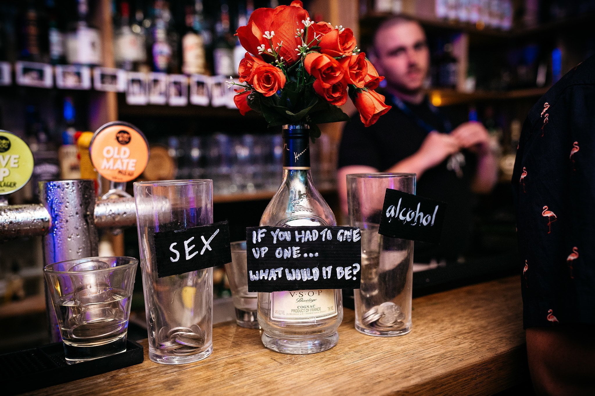 THE PROPOSAL We agreed originally that Mahatia would propose because she had lots of rules about when the proposal could take place, but eventually Mahatia agreed that I should propose, because I am more sensible! We were due to go overseas together for the first time and I laid out photos on our bed with rose petals. On the dresser I had five glass bottles with a memory from the past three years. I also had wine labels made up and put two bottles of red wine, with the labels that had our engagement date on them. I wrote out my proposal to Mahatia and had it made into a print, which I had framed and hung above our bed. As soon as she walked into the bedroom, I burst into tears and hugged her, before I showed her all of the things in the room and I proposed. Under strict instruction, I did NOT get onto one knee! Then I had booked an obnoxiously large limo, which drove us to the airport, where we drank a whole bottle of champagne and called our families and told them the great news.