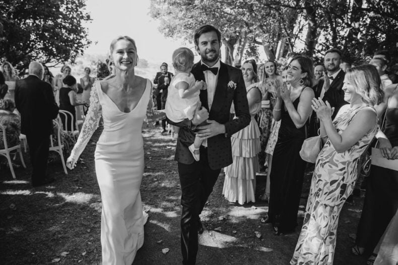 This is the story of Victoria and Todd, who had been together for three years when Victoria dropped her knee and popped the question. “The prospect was pretty daunting at first. I knew that I wanted the proposal to be filled with Todd’s favourite things and I wanted him to be surprised,” Victoria shares. Yes girl – we love to see it! With their little two-year-old Ava along for the ride, the couple planned an epic celebration at the gorgeous Greyleigh in Kiama, and enlisted Garnish Catering, The Future Mrs, Fritillerie, The White Tree and Maple and June on photos to help bring the vision to life. Woah, that’s quite the line-up. You know you’re going to want to scroll down to see…