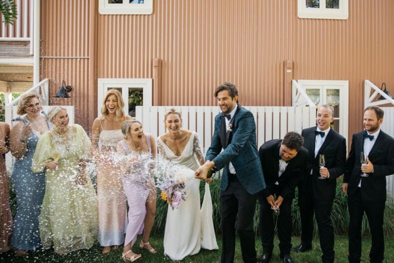 STANDOUT VENDORS “Jo at Garnish Catering is the best. We had such a tricky matrix of dietaries across the guests, and she absolutely nailed it. Jo is so lovely to talk to and open to trying new things (like watermelon tartare with ponzu dressing and coriander roots on a crispy wonton for our vegan mates). Our photographers Angela and Ivy from Maple & June were incredible too. They were so warm and fun to take photos with and gave us great directives. The coverage of our wedding was amazing! They did not miss a beat.”