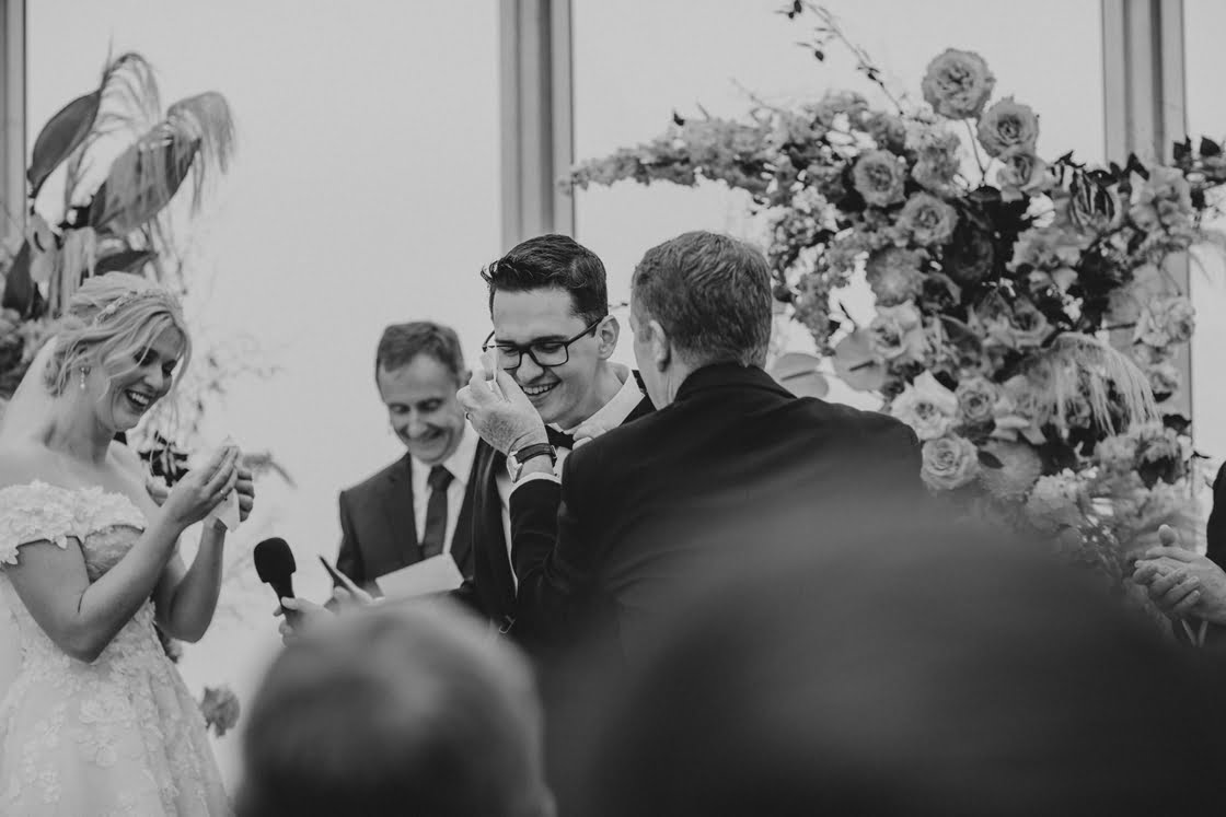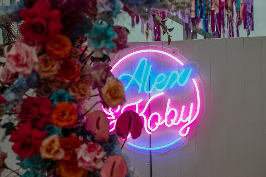 CONTRIBUTING VENDORS Photographer & Cinematographer Cloud Catcher Studio Event Planner Event Stylist & Co Florist Mrs Gibbons Flowers Stationery & Signage Paper Fusion Printer NR Signs Venue Rosewood Estate Catering Gareth Keenan Catering Cake Petal + Peach Hire Items Moreton Hire, Table for Louis Lighting Hire AvIdeas DJ Cut A Rug Celebrant Les O’Berg (friend) Rings Hampton Fine Jewellery Guest Transport Gold Coast Coachlines Neon Sign Neon Republic Bio Confetti The Whole Bride Confetti Blower & Metallic Confetti Stage FX BRIDE Dress & Veil George Wu Hair Piece & Earrings Tania Maras Shoes Terry De Havilland Hair Isabella Jane Hair & Makeup Makeup Bexi Make Up Artist Bridesmaid Dresses Shona Joy GROOM Suit Wil Valor Bow Tie OTAA Cufflinks HartGiftCo via Etsy Shoes Hush Puppies Groomsmen Suits Black Jacket Suiting