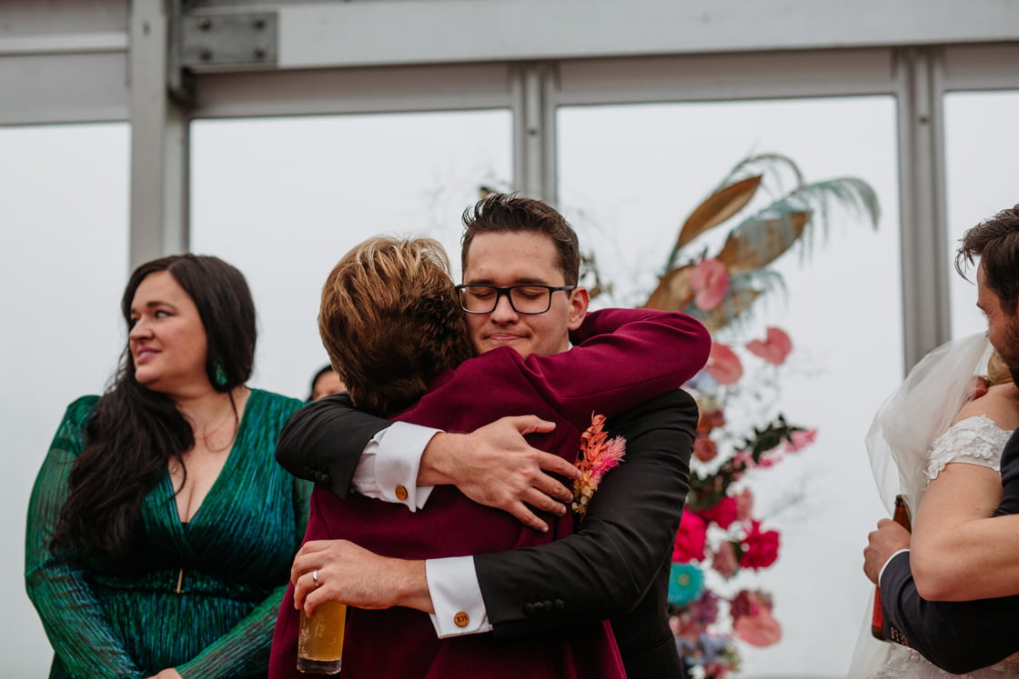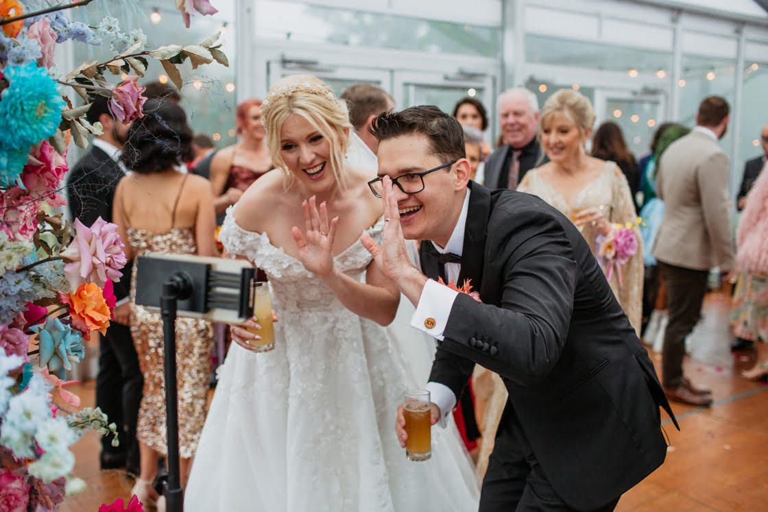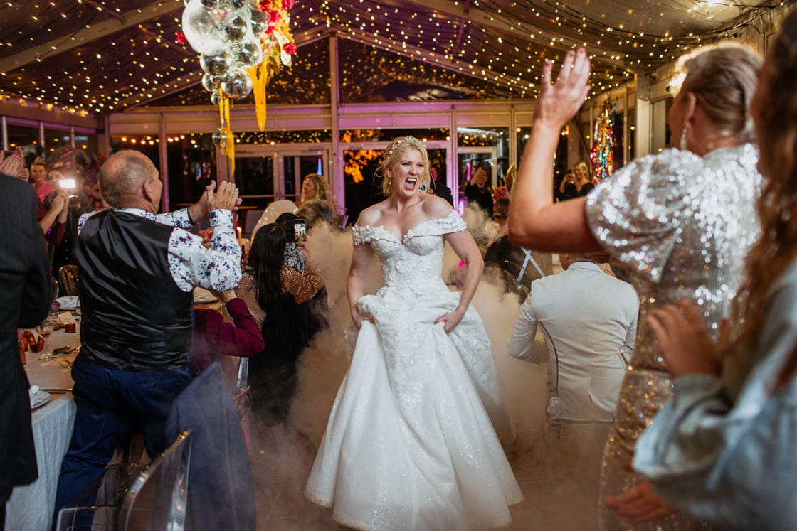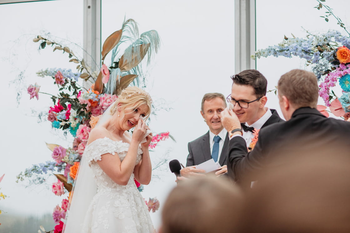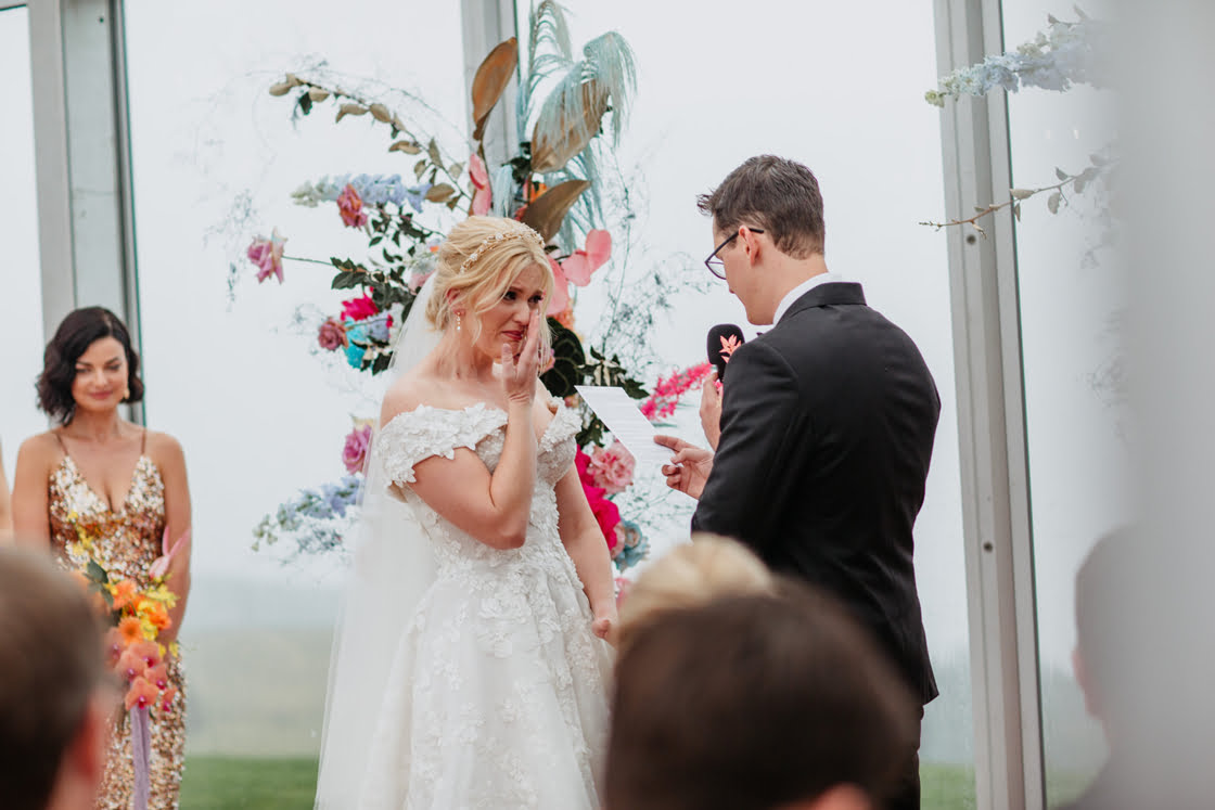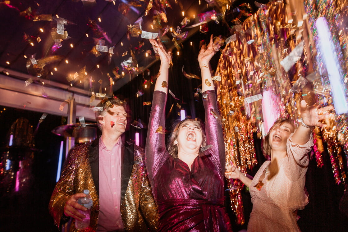 Alex & Koby’s “sunset disco” themed wedding is just the inspo you need this Monday morn. These two didn’t let the weather dampen their disco fever despite a rained out portrait sesh. Being the Studio Manager of Cloud Catcher Studio (the very collective that snapped these here pics), Alex called on her colleagues for a day after portrait session in the sun. All’s well that ends well, eh? With Mrs Gibbons on blooms and mates behind the lens, you’ll want to read on to learn more about this great day…